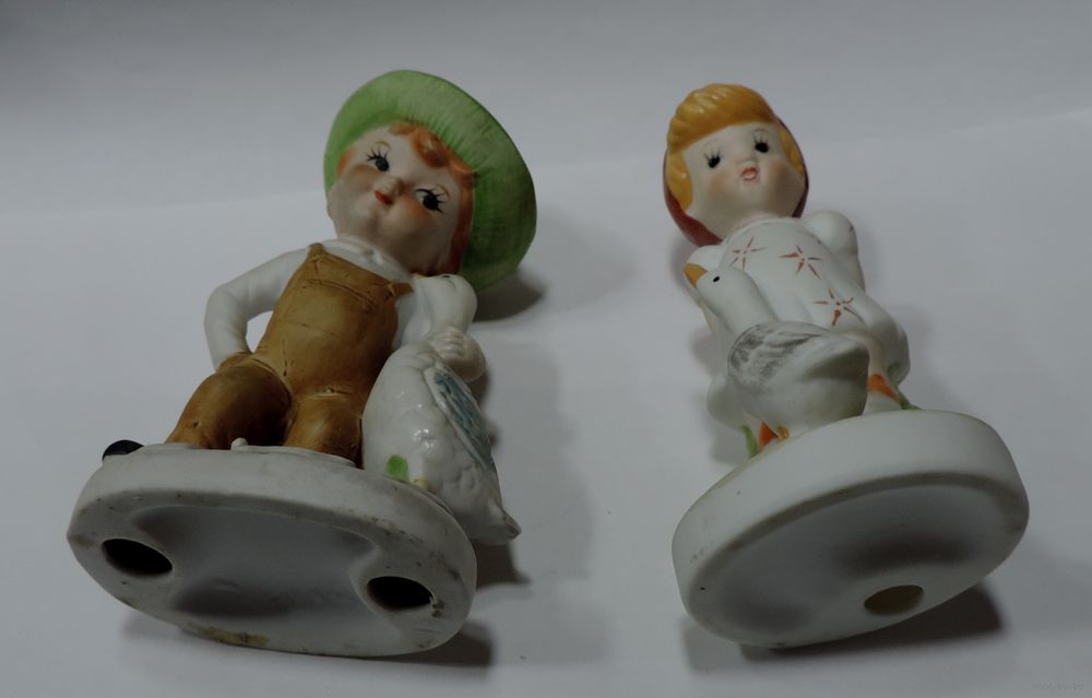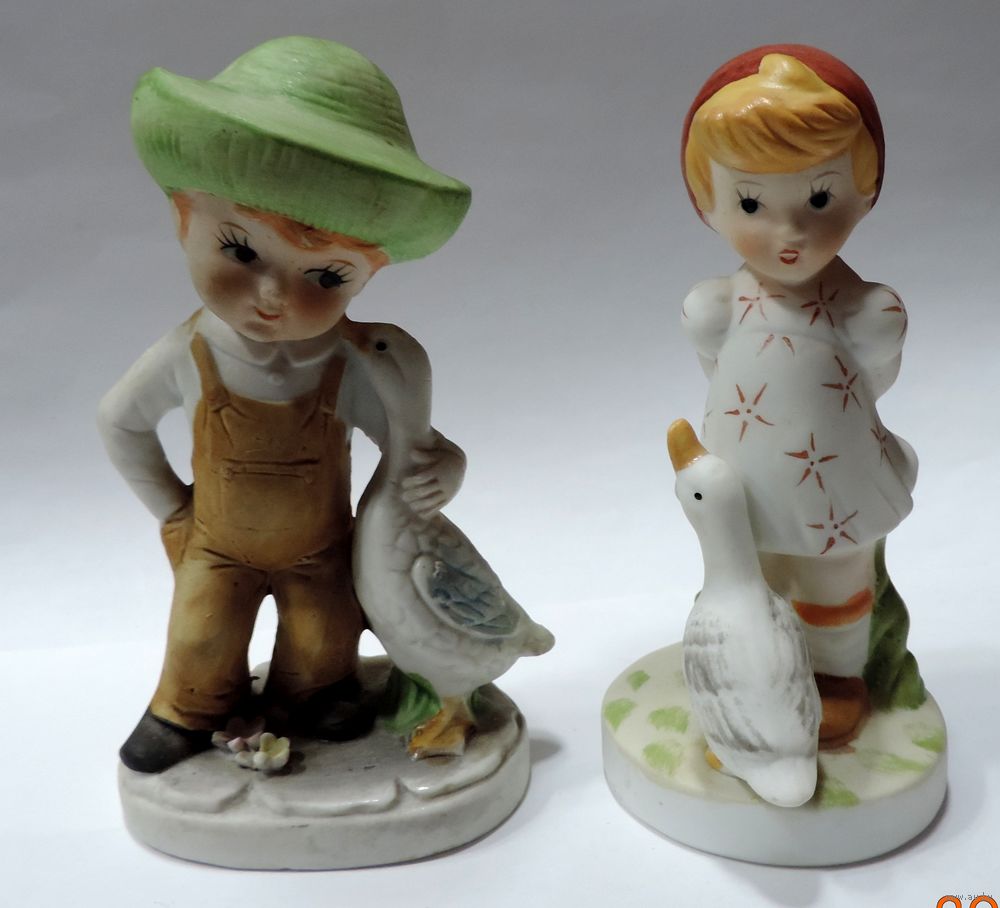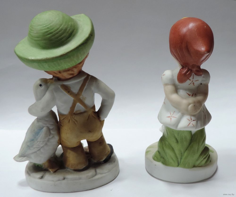 Статуэтки фарфоровые "Девочка с уткой и мальчик с гусем" 80-е годы Европа. Высота 12 см.