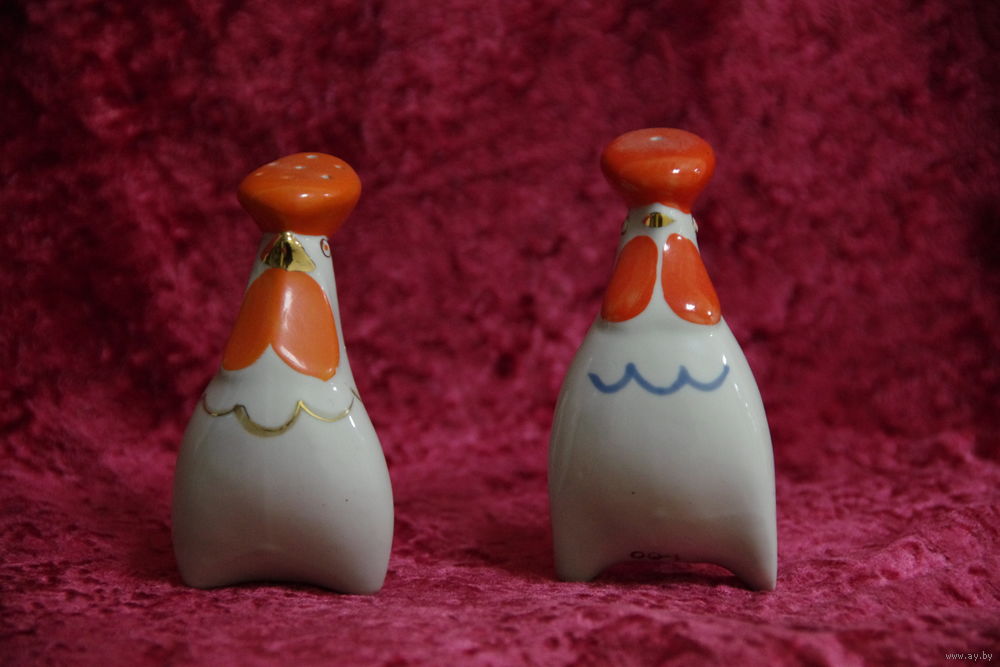 Статуэтки фарфоровые " Петушки - солонки " 2 шт ( целые )