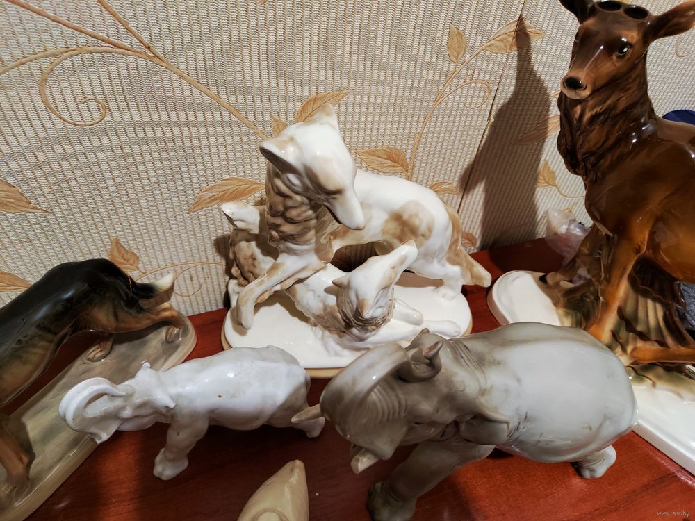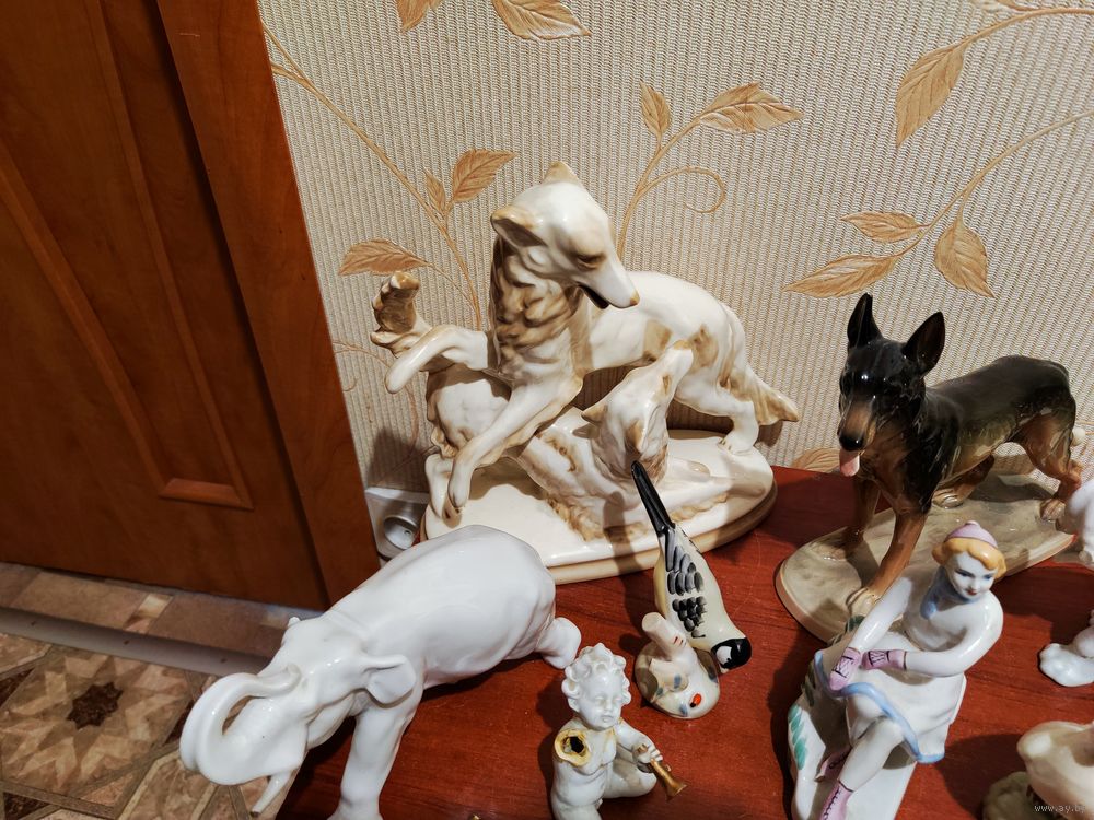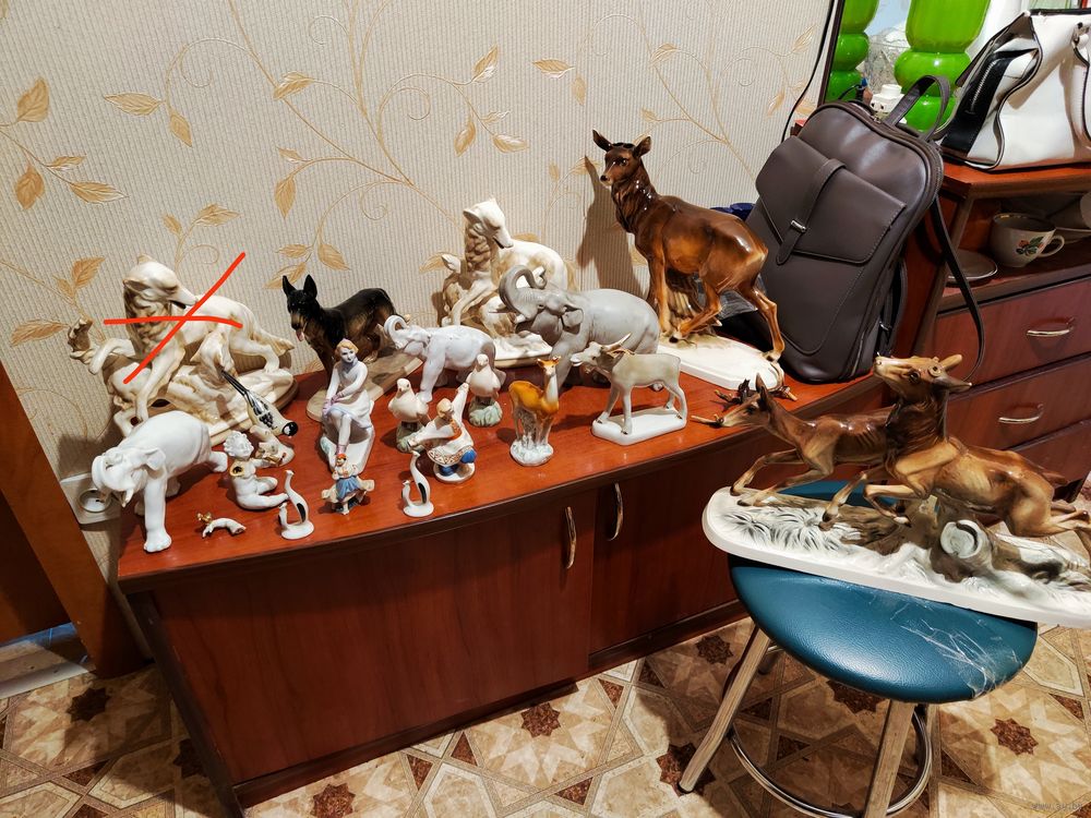 Все статуэтки с дефектами сколы трещины склейки. Одна статуэтка собаки Минск выставил отдельно и продал.