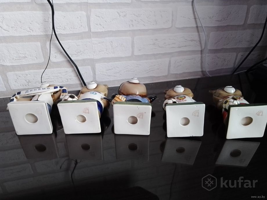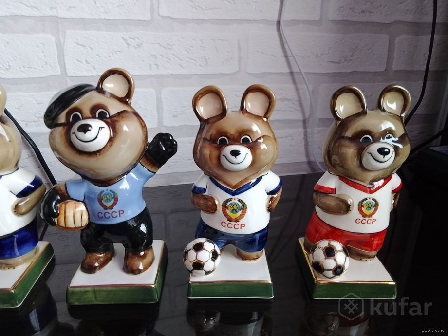 Пять статуэток. Олимпийский мишка футболист/болельщик СССР и "ДИНАМО". Высота 14-15 см. Современное производство Вербилки. Продаются лотом 5 штук. Отдельно нет. Район Ангарская.