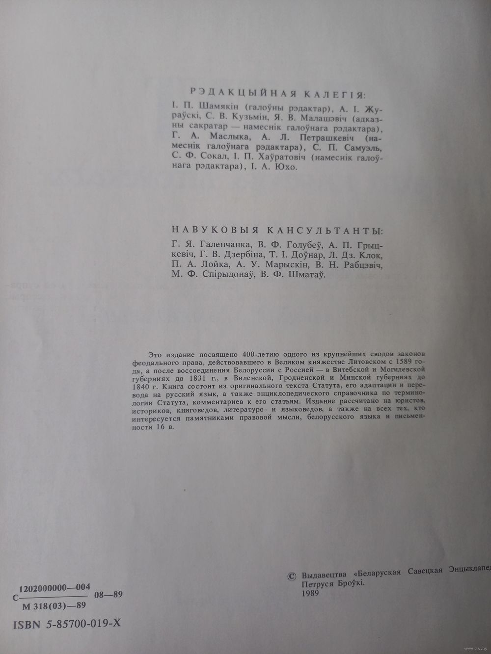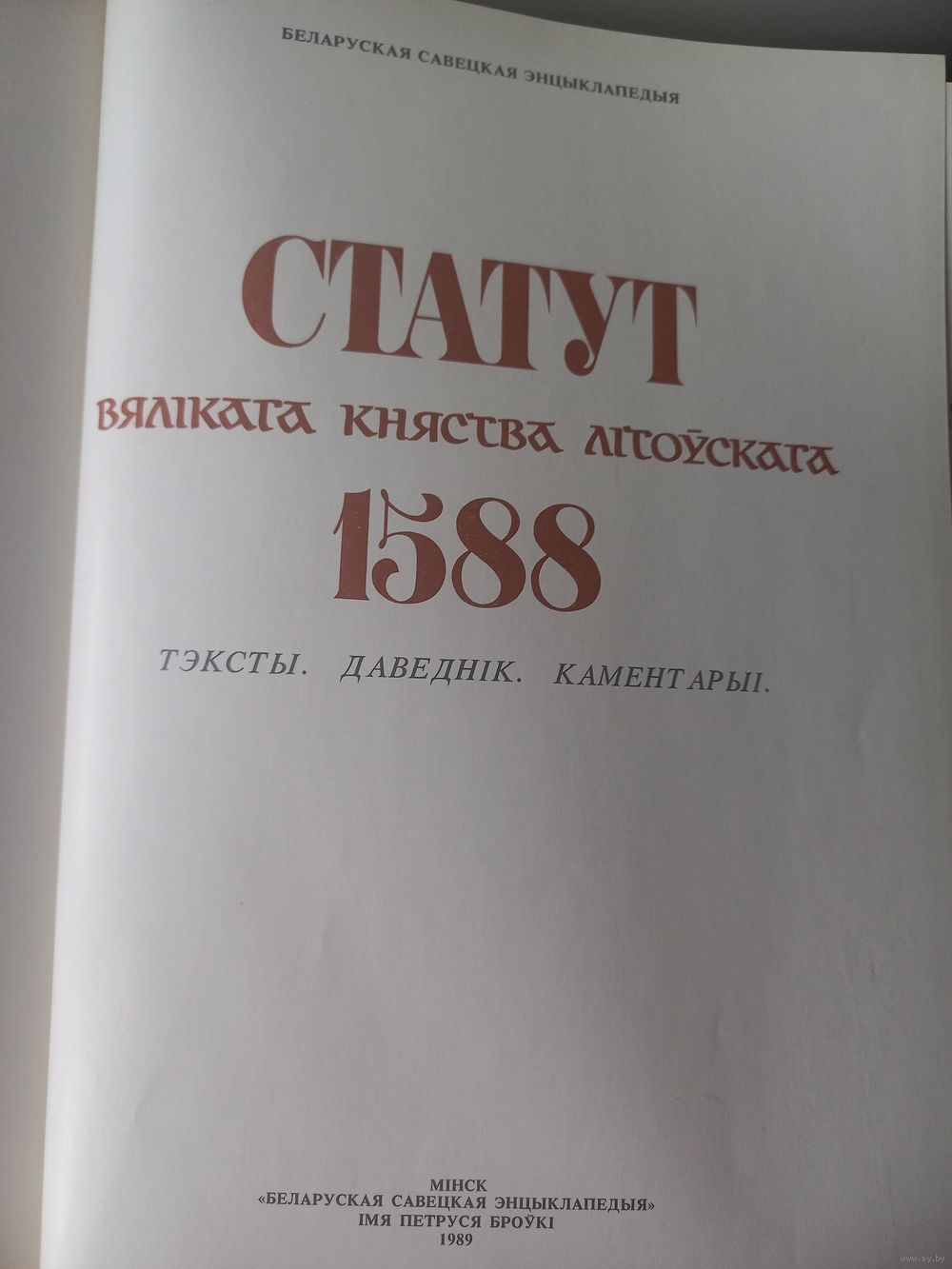 Статут Вялікага Княства Літоўскага 1588. Статут Великого Княжества Литовского 1588. Минск 1989 г.