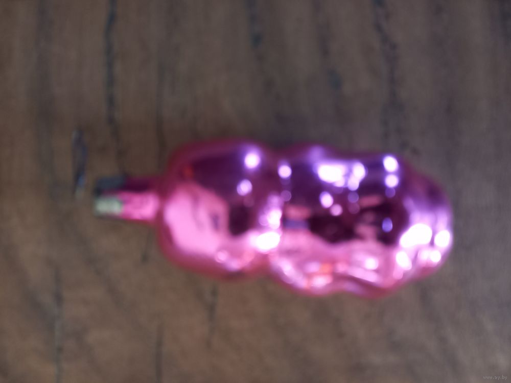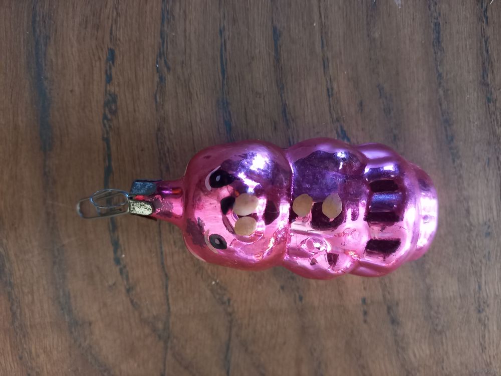Елочная игрушка СССР, стекло, мишка розовый.