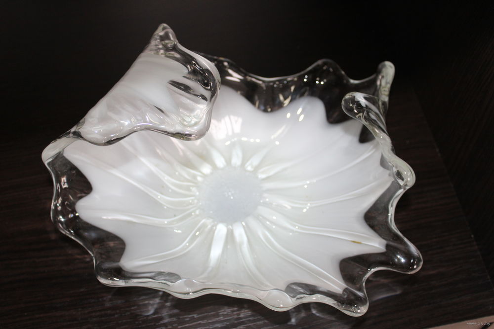 Стеклянная конфетница, стеклозавод "Неман", из СССР, высота 12,5 см., диаметр 18 см.