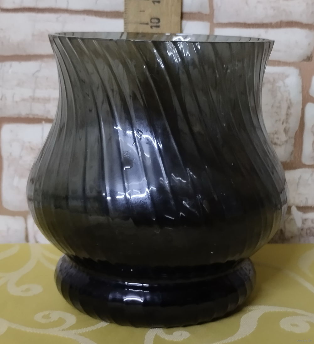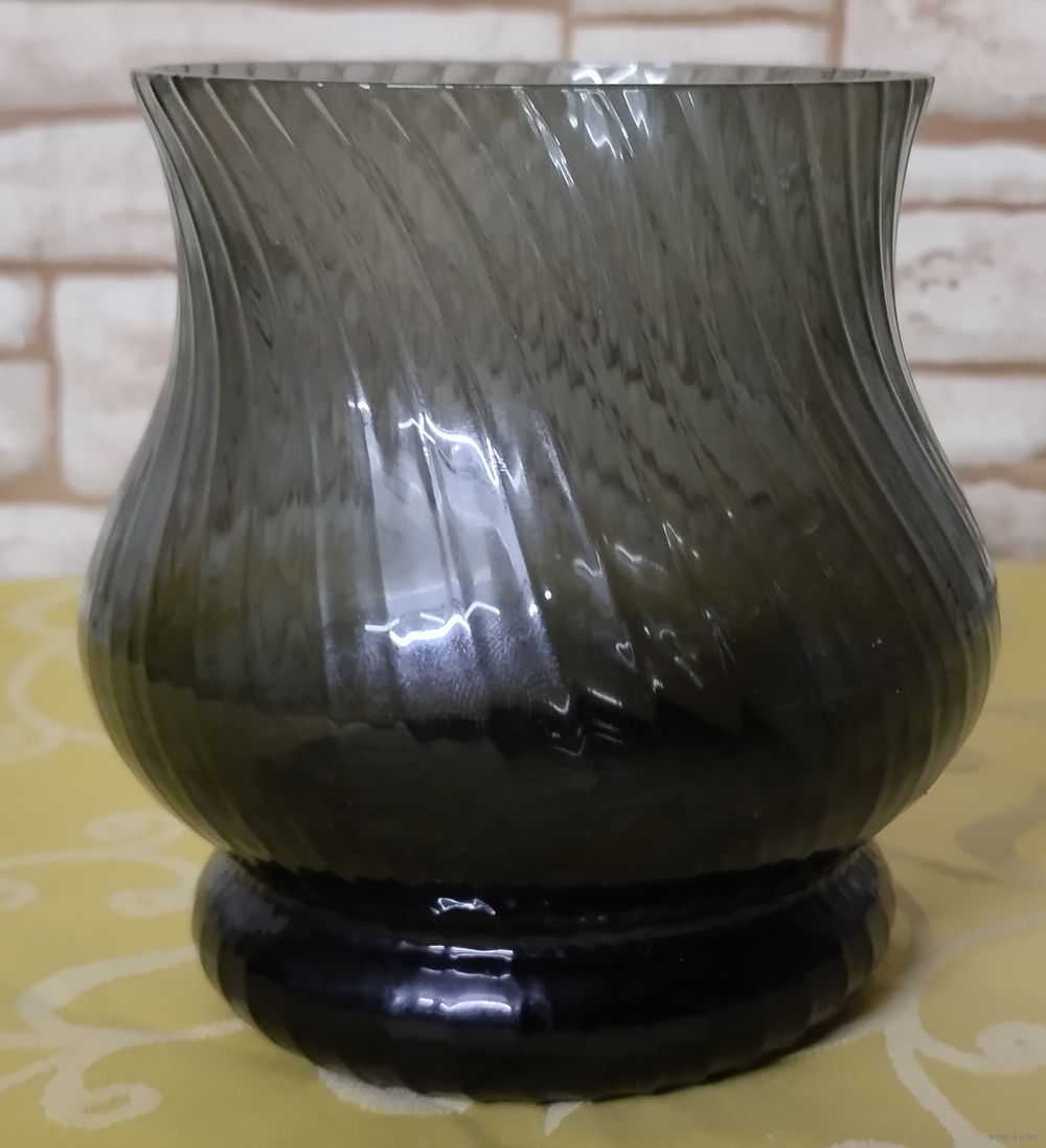 Стеклянная вазочка-букетница с дымчатым, темно-серым или оливково-черным оттенком.