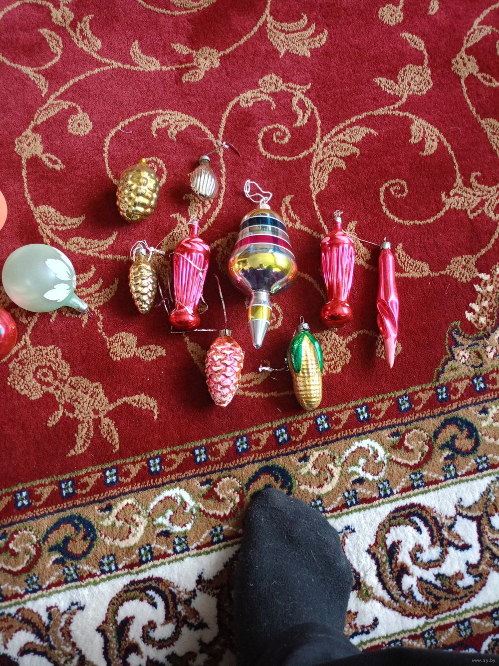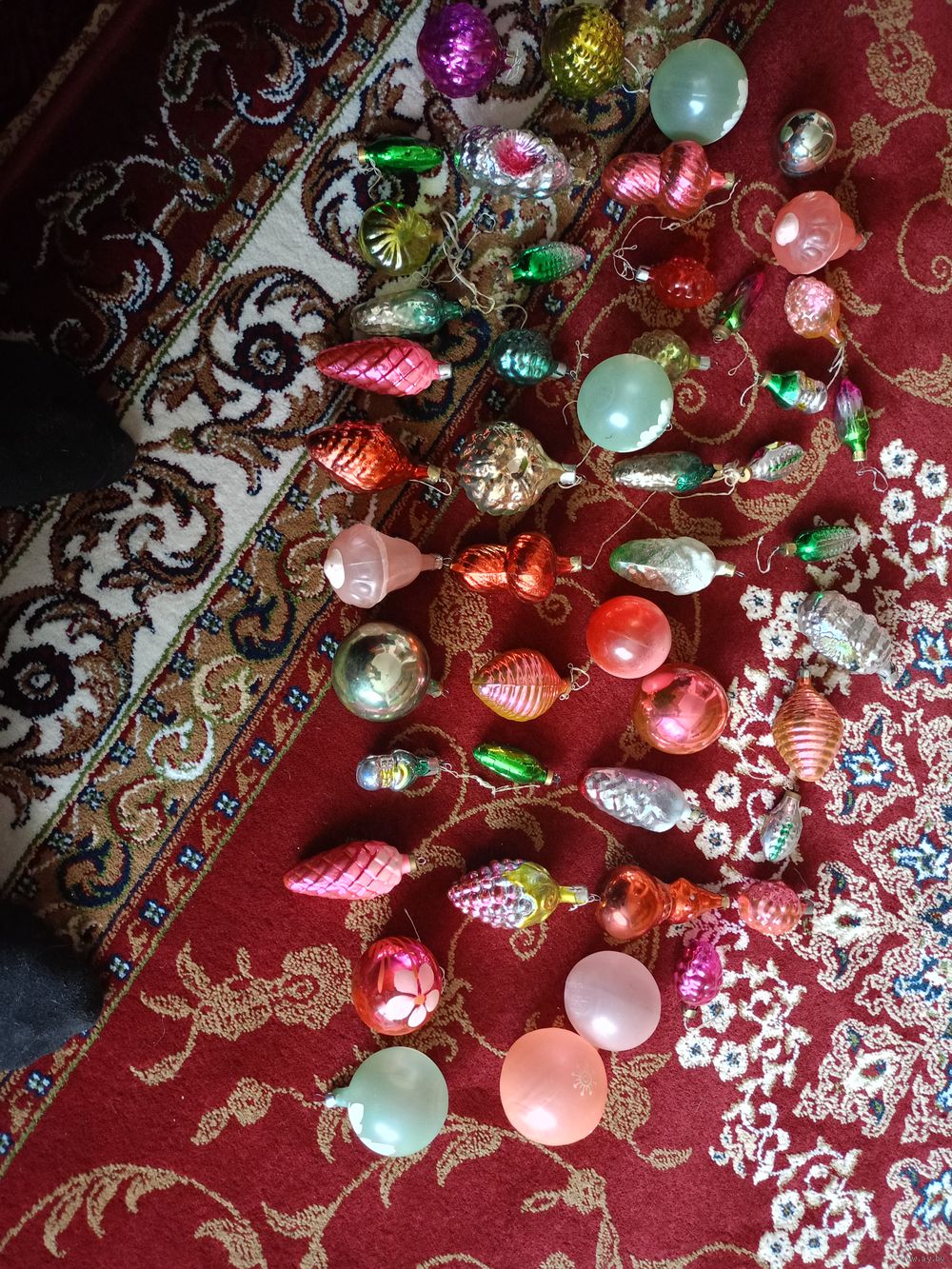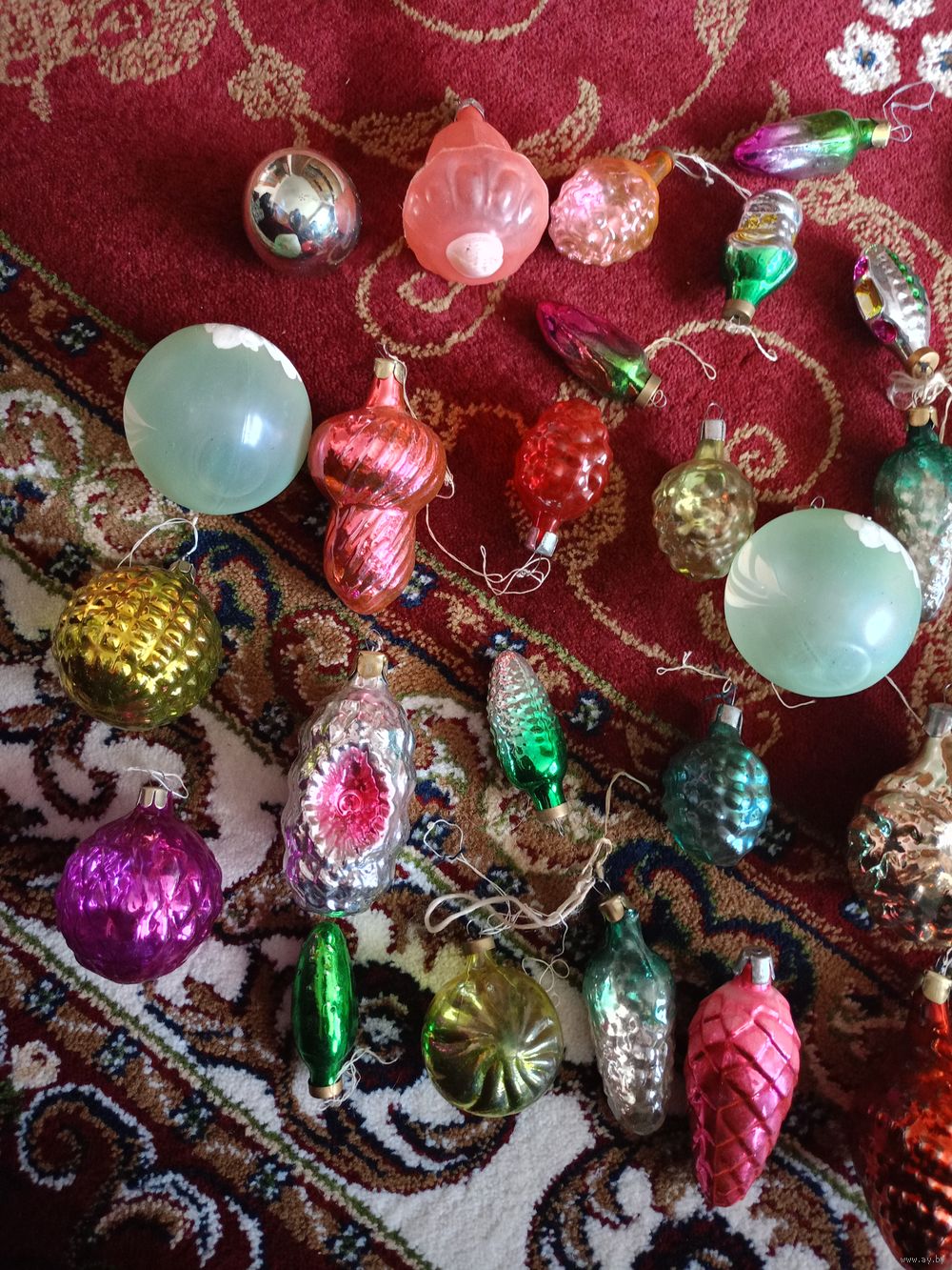 На изображении представлена коллекция винтажных елочных игрушек времен СССР. Эти стеклянные украшения различных форм .