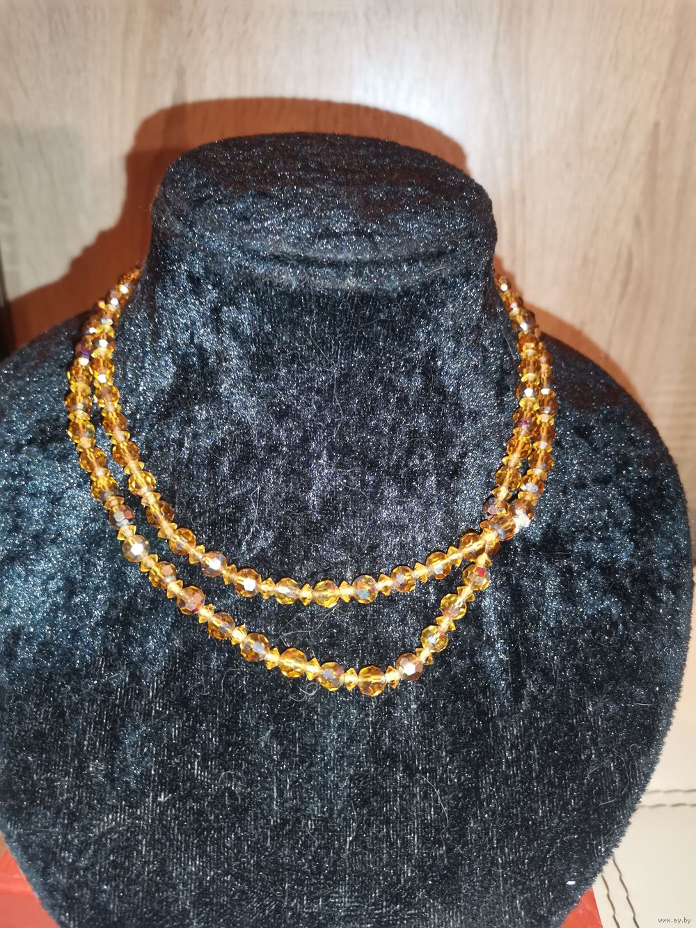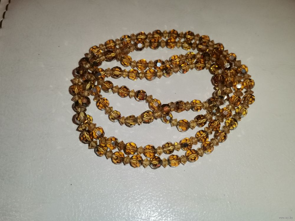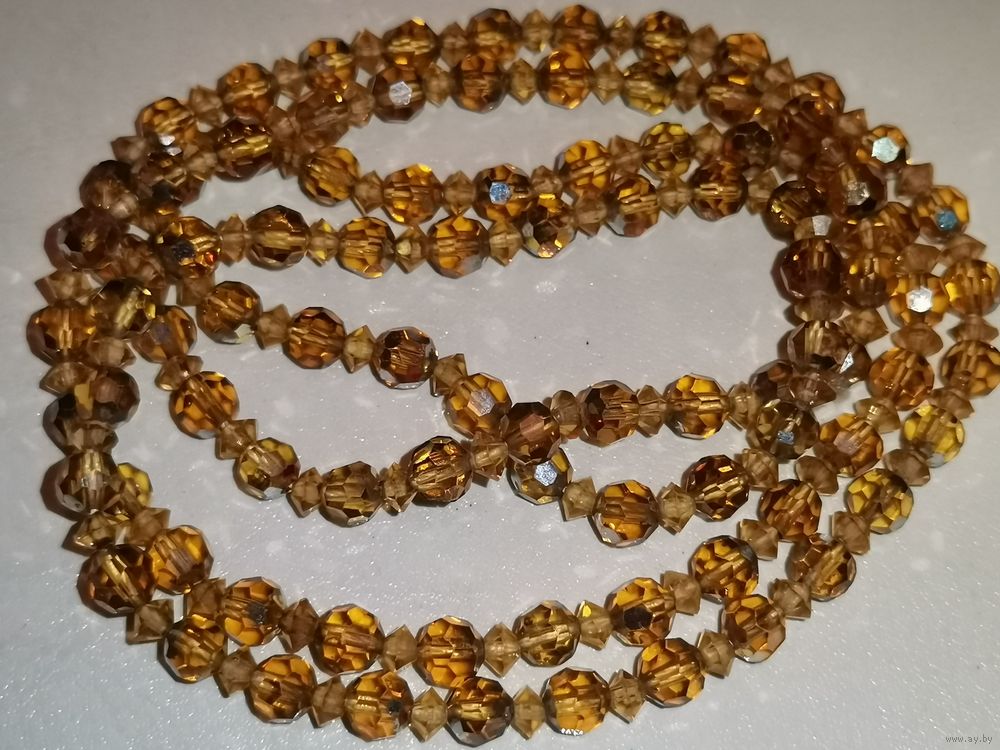 Стеклянные, гранёные бусы, времён ЧССР, длина 80 см.