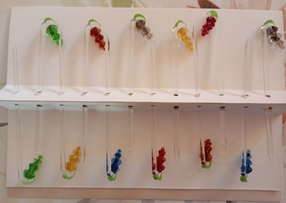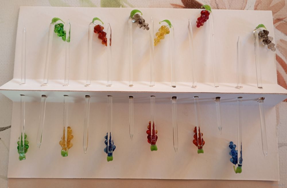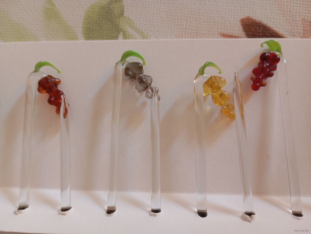 Изящные стеклянные шпажки с украшением в форме виноградных гроздьев для коктейля или канапе.