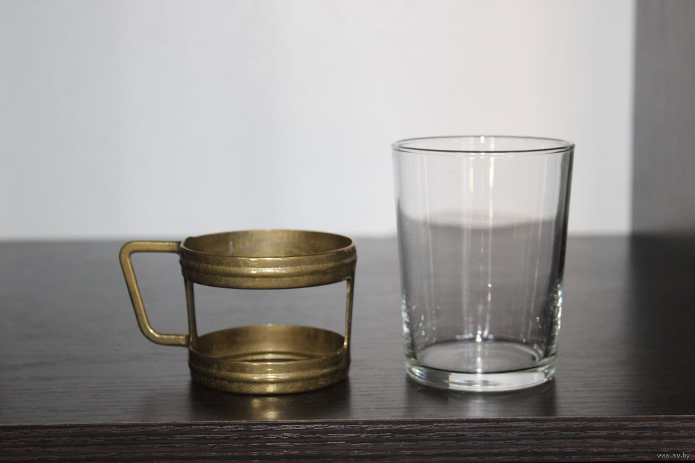 Высота стакана без подстаканника 8,9 см., внутренний диаметр 6,6 см., высота подстаканника 5,2 см., диаметр 6,6 см.