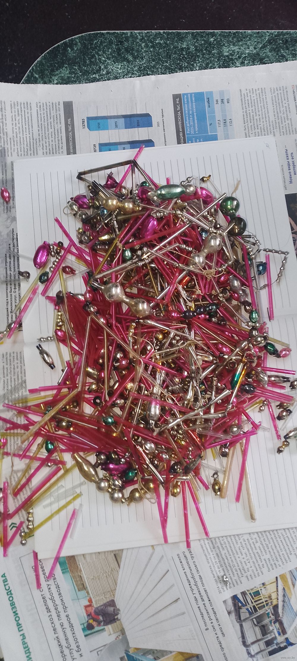 Бусы нужно самому связать, как т. к. в основном по отдельности. Попадаются и побитые бусы, но их нужно выбирать из ниток.