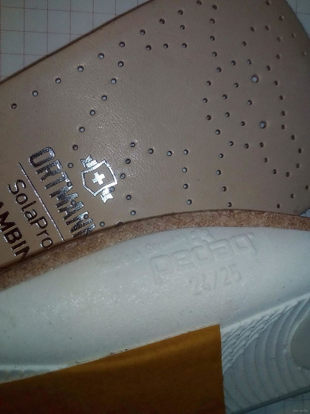 Натуральная кожа, резиновый амортизирующий каркас под продольный свод, пелот поперечного свода отсутствует, внутренний край каркаса толще наружного (клиновидная форма)