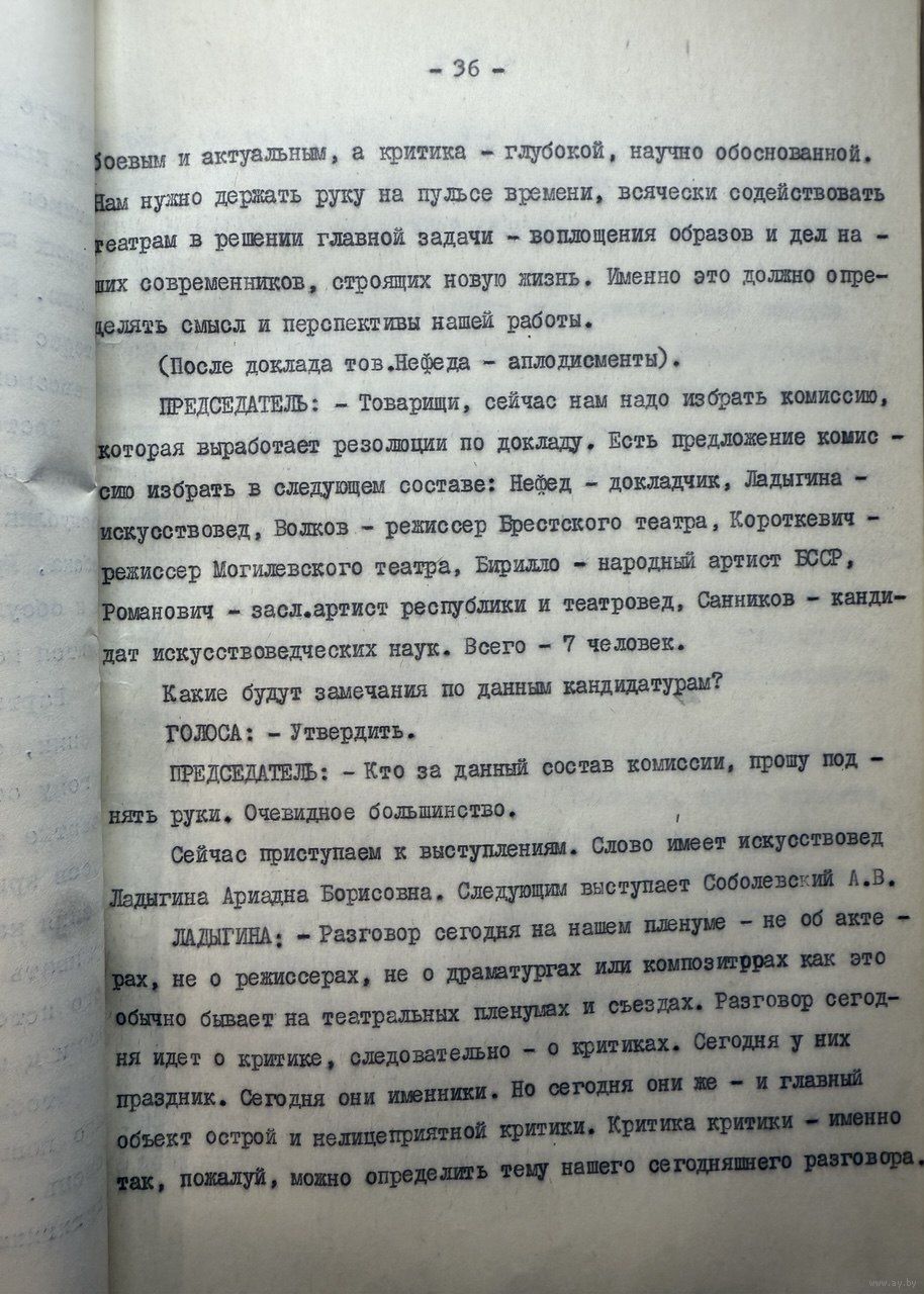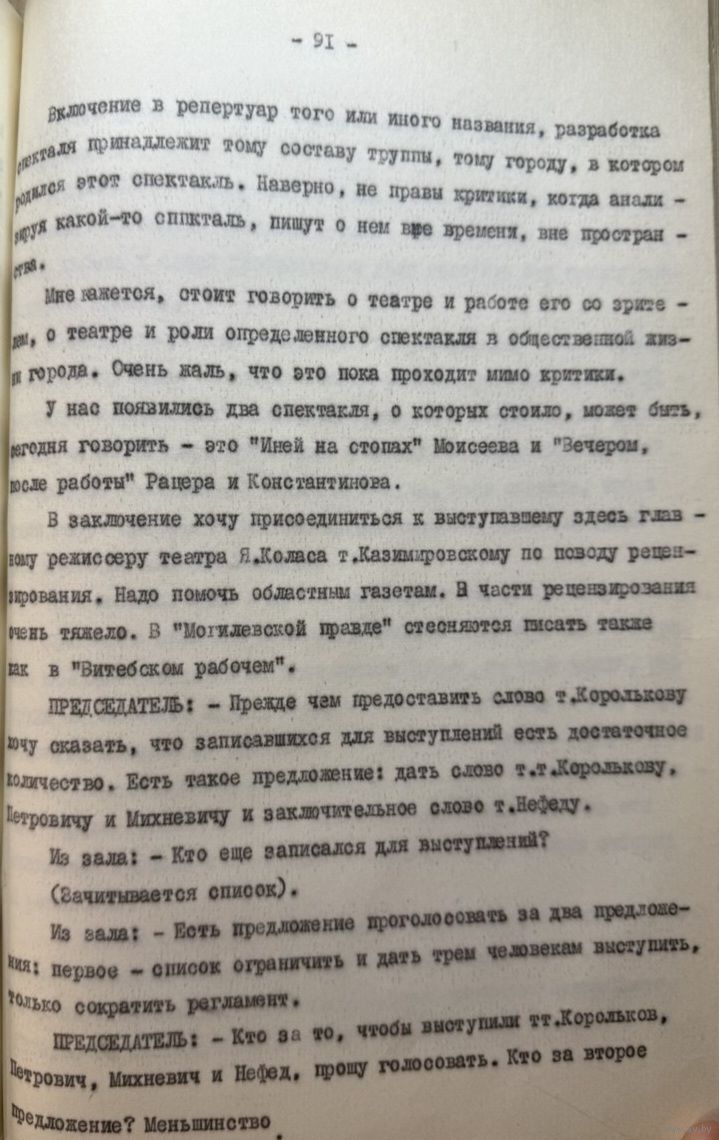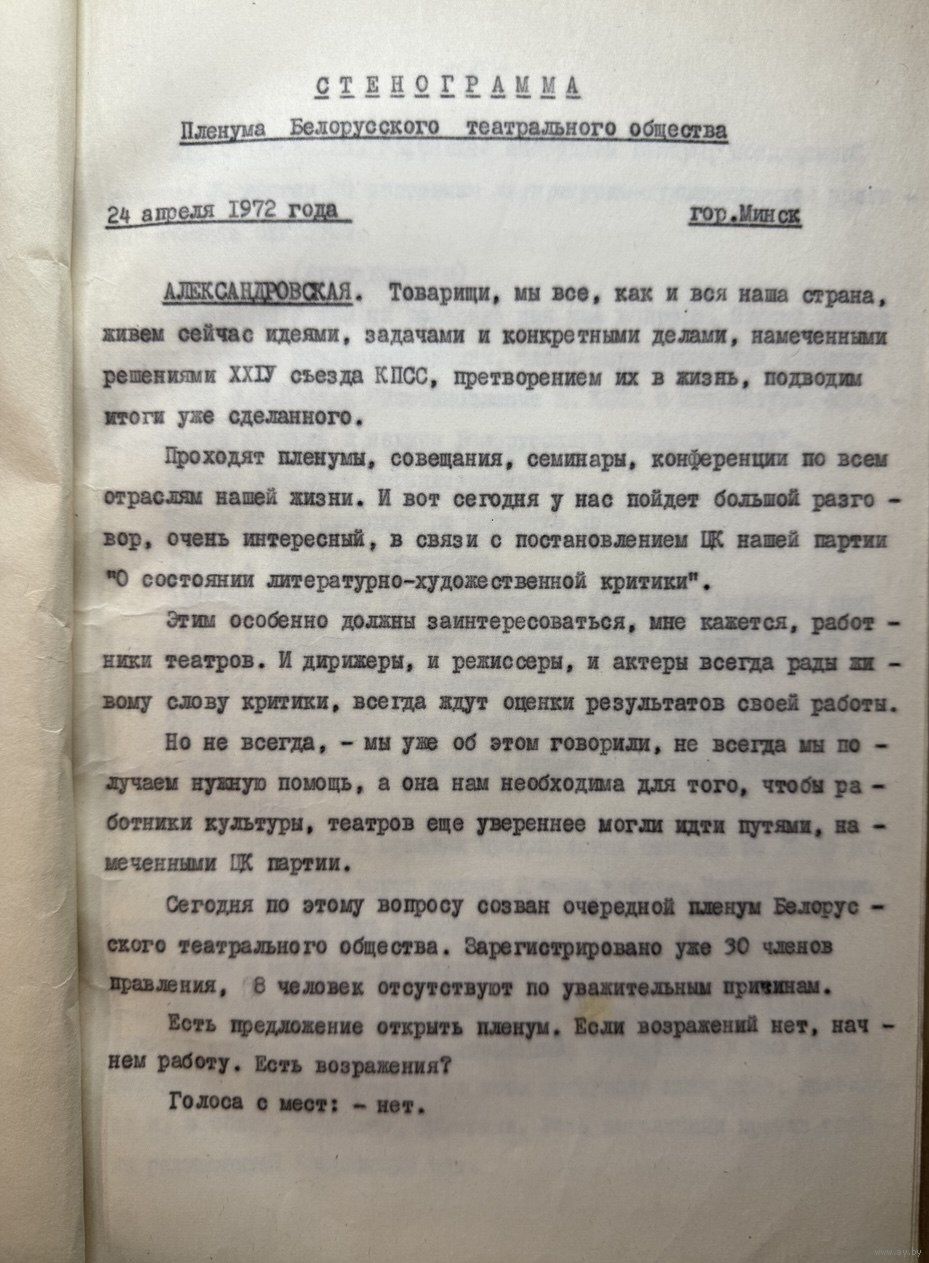 Стенограмма Пленума Белорусского театрального общества Минск 24 апреля 1972 года