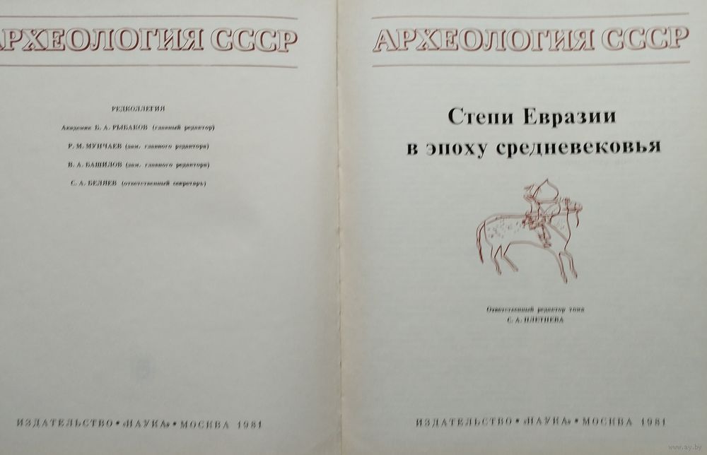 Большой энциклопедический формат. Тираж 31500 экз. 304 стр. Книга включает археологические материалы, относящиеся к раннему и развитому средневековью, т. е. охватывает древности целого тысячелетия, с IV по XIV в., распространенные на огромной территории степей - от Забайкалья до низовий Дуная. Труд создан ведущими специалистами по археологии и является первым коллективным обобщением огромной работы, проверенной археологами в последнее столетие, по изучению средневековых кочевнических древностей.