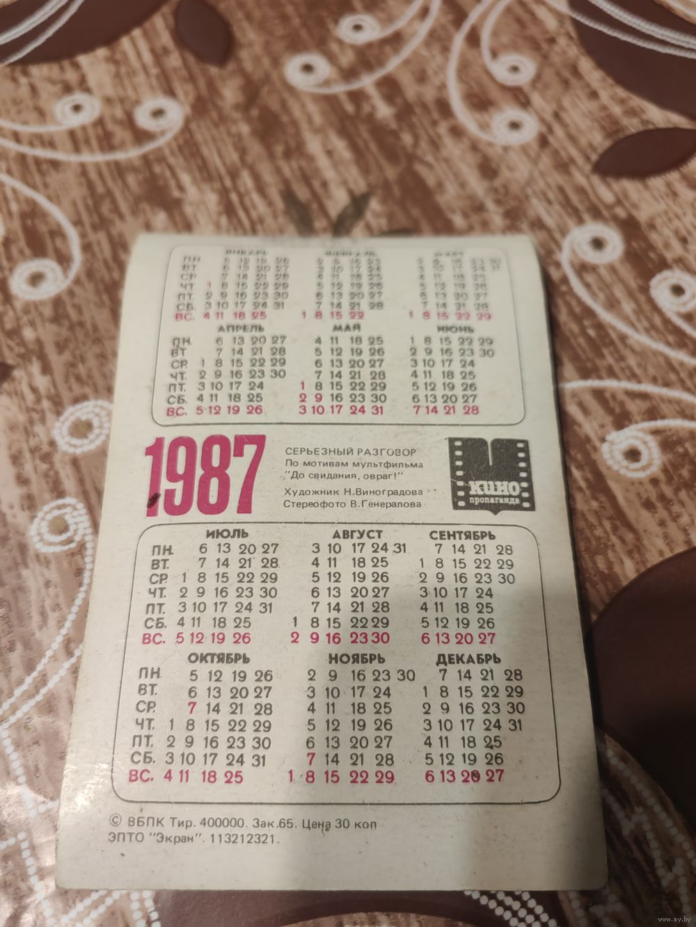 Стерео календарик,серьезный разговор,1987