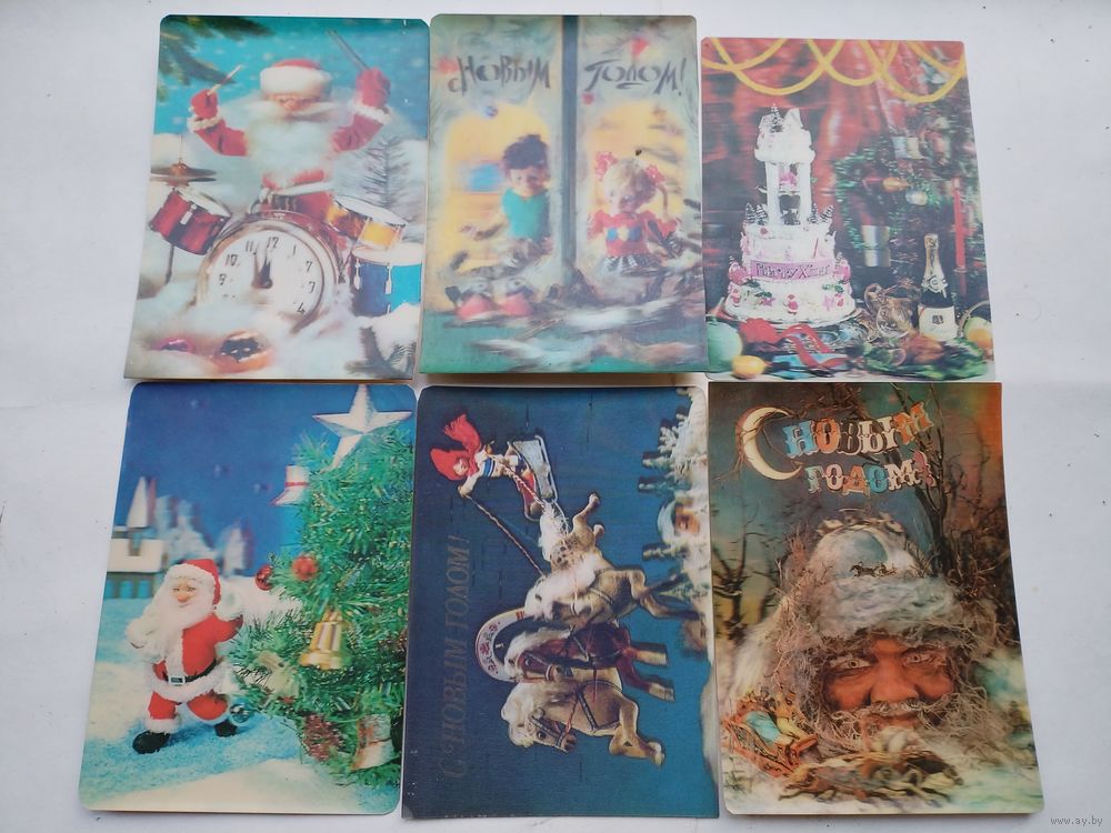 Стереооткрытки с голографическим эффектом. С новым годом! цена за 1 шт.