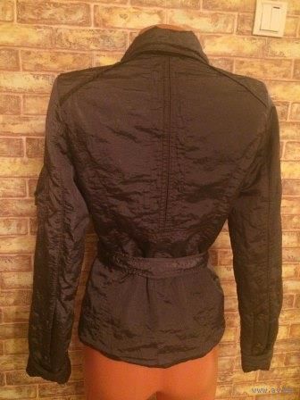 Стильная куртка на 42-44 размер красивого шоколадного цвета с перламутром. Весна-осень. Длина 59 см, длина рукава 65 см + подразумевается его закасать, ПОгруди 47 см, ПОгруди 41 см. На поясе.