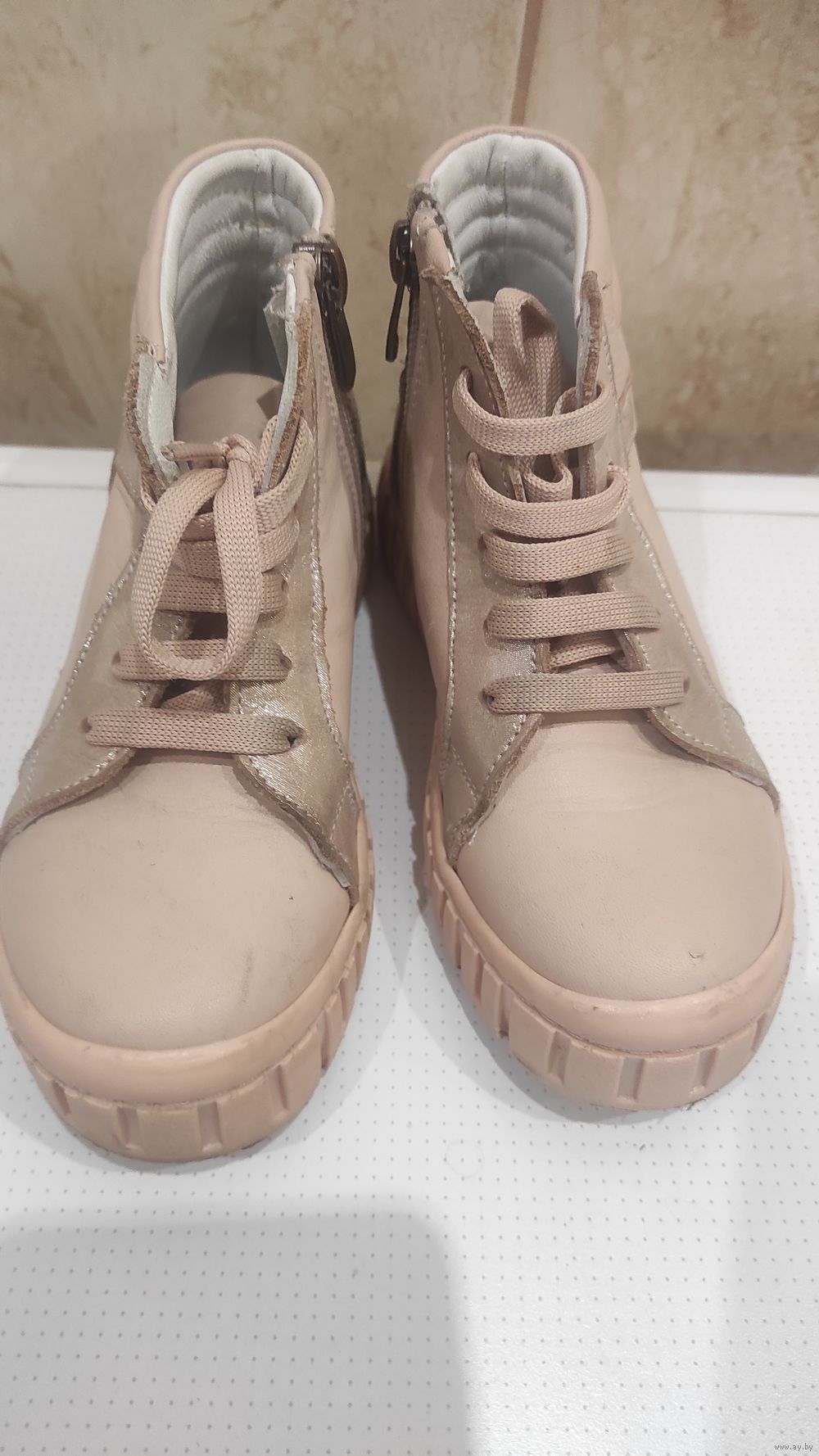 Стильные ботинки Ponki на 28 размер. Невероятно удобная фабричная обувь из качественно натуральной кожи, покупаю за границей. Сразу привожу по 5-7 пар на год. И зимние и осенние носятся идеально, летом и на переобувку носим удобнейшие босоножки Ponki. По стельке 18 см. Деми. Носили сезон, есть естественные следы носки. Высота 11,5 см.