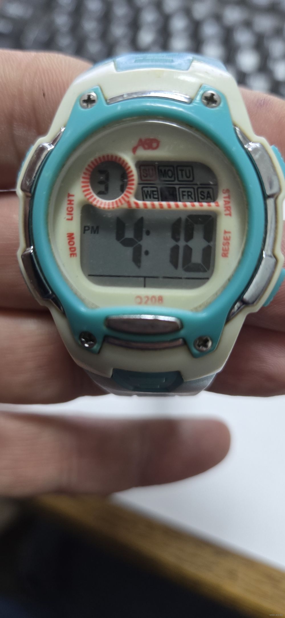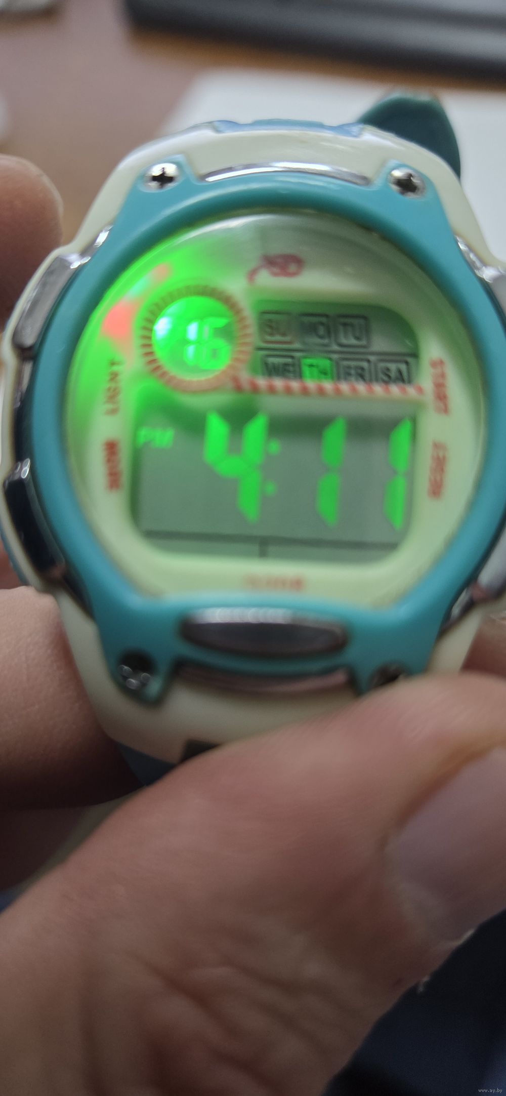 Стильные детские электронные часы. Все необходимые функции (время, дата с указанием дня недели, будильник, яркая подсветка) присутствуют. Установлен новый элемент питания CR2025.