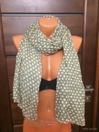 Фото 8. Красивый легкий палантин, новый, р 1,80 на 63 см. Покупала в Германии. Цвет бежево-болотный в сердечки. Приятная цена. Цена 20,00