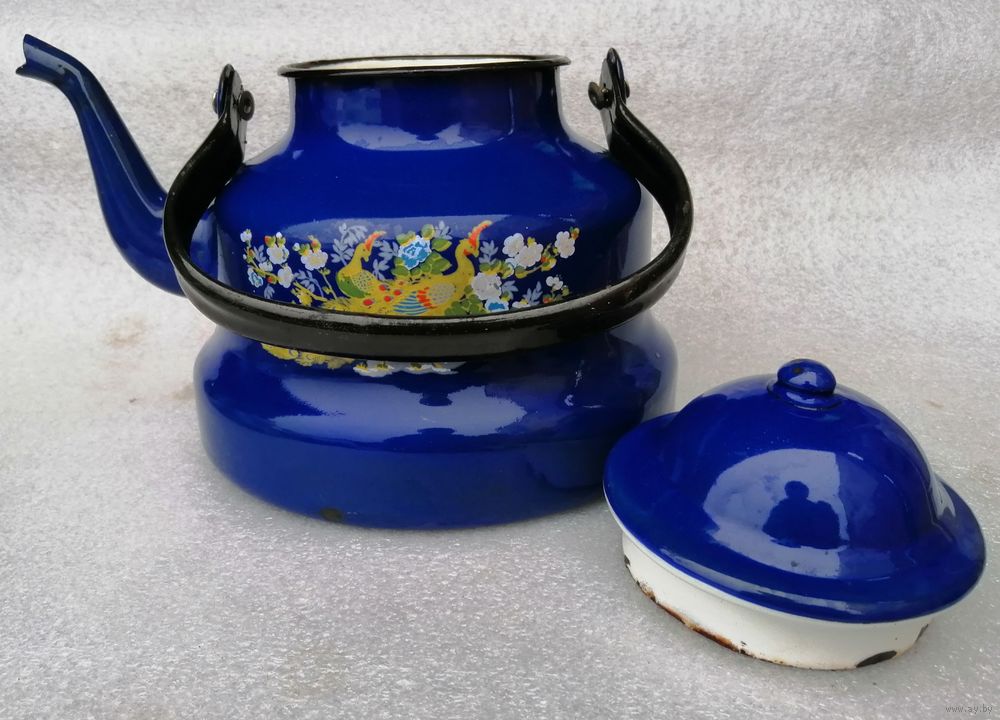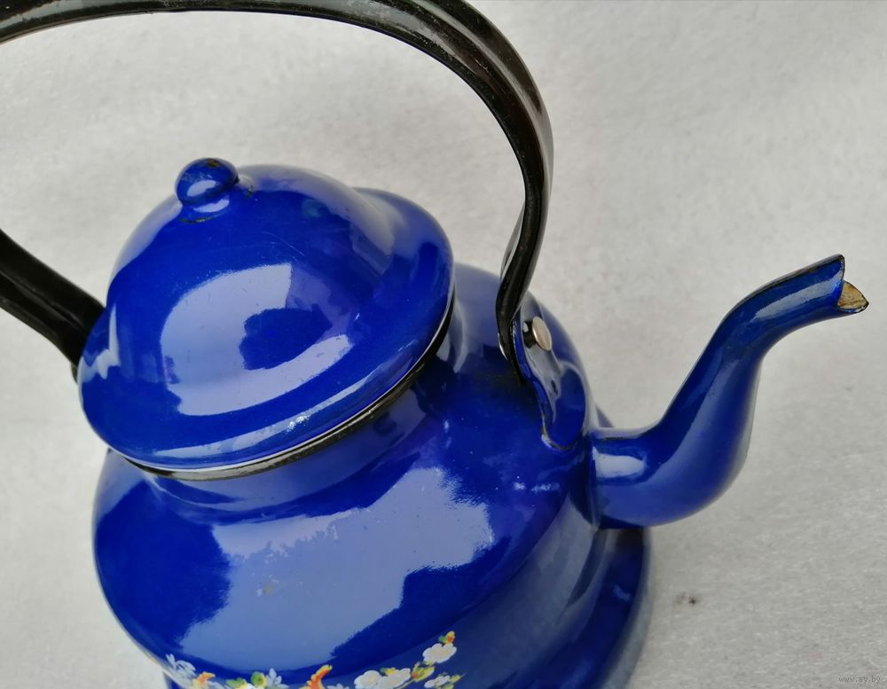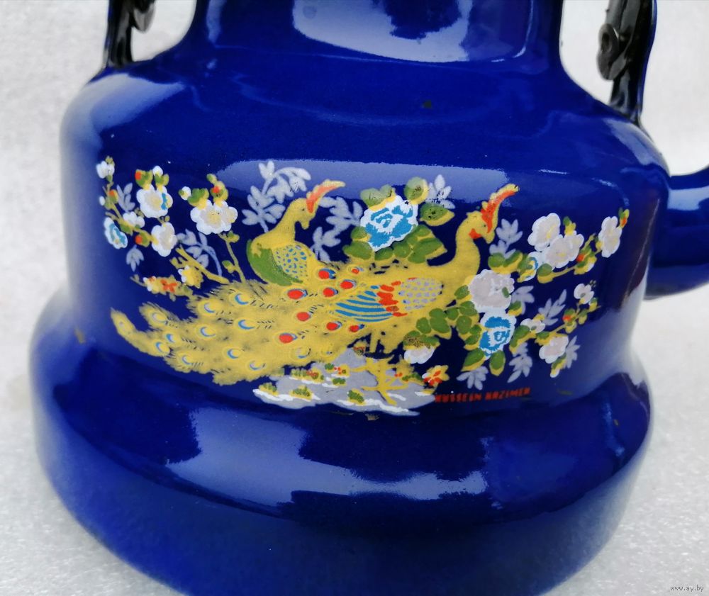 Стильный, эмалированный чайник, кобальт, СССР, прим 3л.