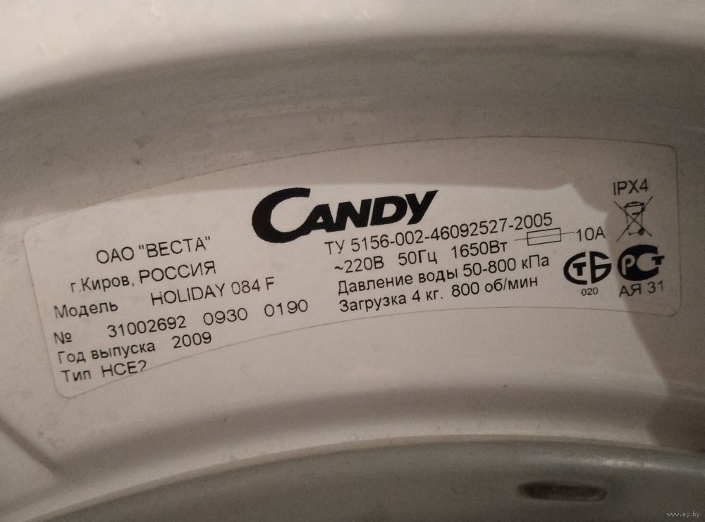 CANDI Holiday 084 F. Стиральная машина с большим сроком безупречной службы. В рабочем состоянии, но с недостатками: останавливается до завершения цикла стирки, есть проблемы со сливом воды и отжимом, немного разбалансирован барабан. Наверняка можно отремонтировать. Или на запчасти. Движок прекрасный, внешне без изъянов - никаких вмятин и повреждений: много лет была в заботливых руках.