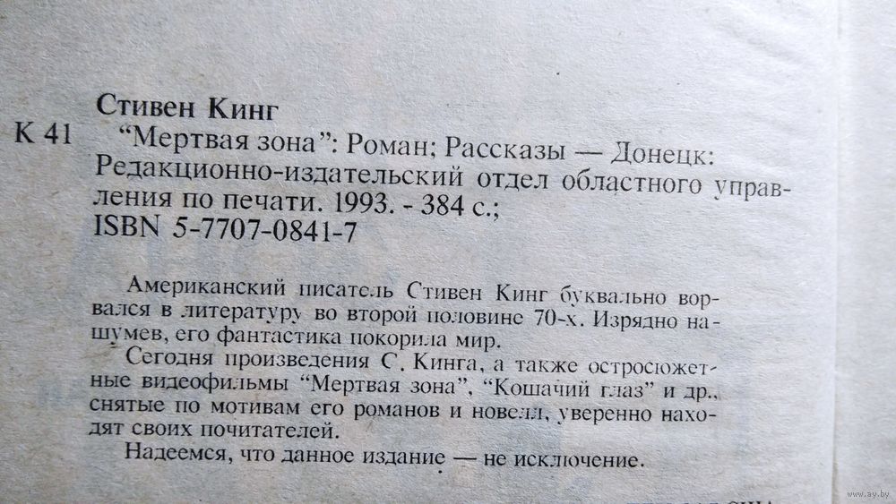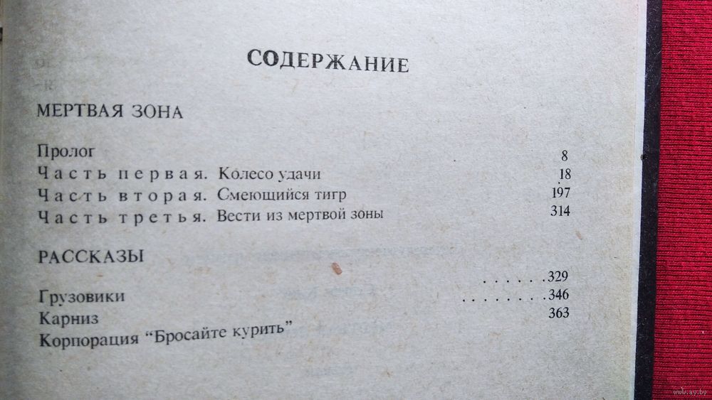 Мертвая зона. Столкновение на льду обернулось для Джона Смита сотрясением мозга. С тех пор его стали преследовать жуткие видения: горящая резина и черный лед. Но вдобавок он приобрел сверхъестественные способности, которыми обладают лишь экстрасенсы. И вскоре выяснилось, что только Джон Смит может остановить неразборчивого в средствах политика, рвущегося к власти... Также в книгу вошли рассказы `Грузовики`, `Карниз` и `Корпорация `Бросайте курить`.