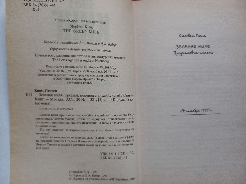 Стивен Кинг. Зеленая миля. 2014 г.