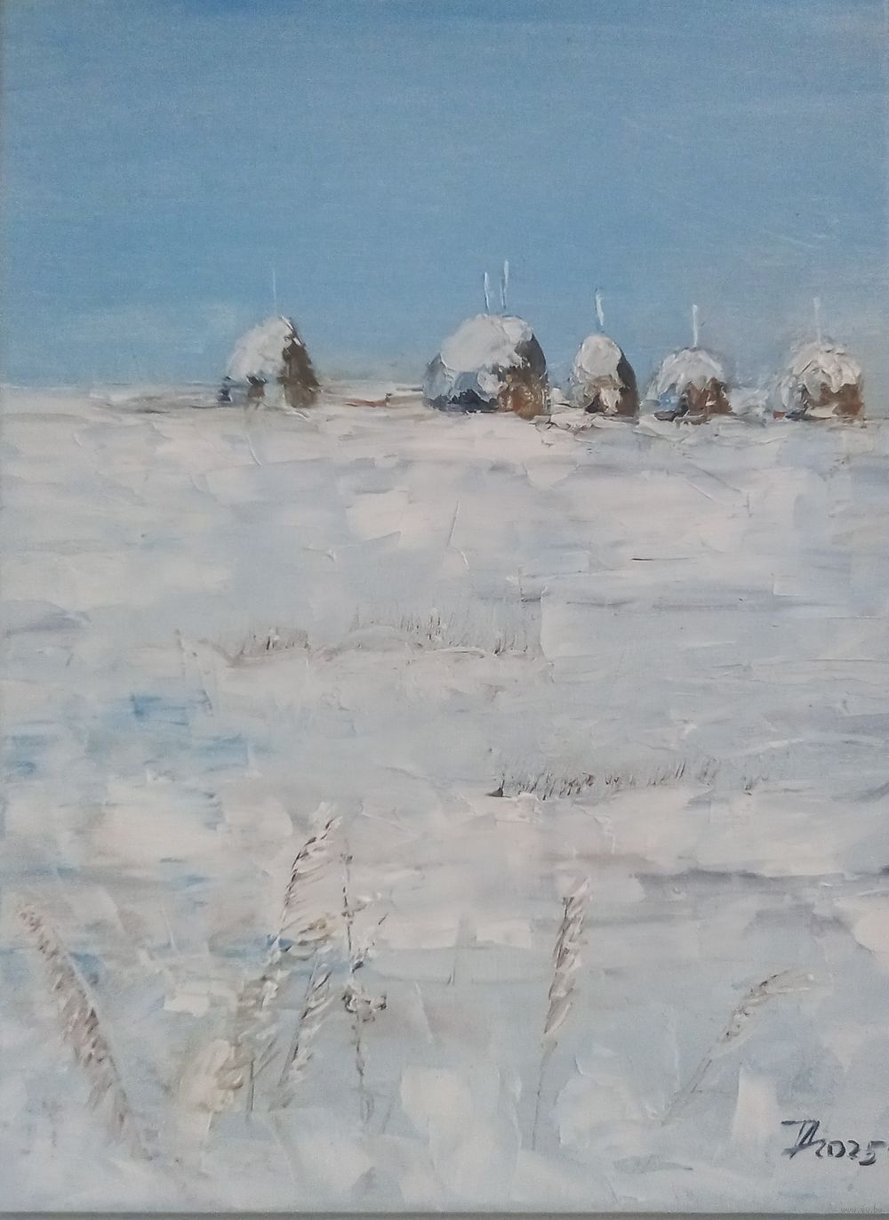 Картина Стога/масло/холст на подрамнике/лак/18×24/Демеш Т.М.