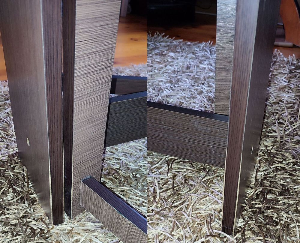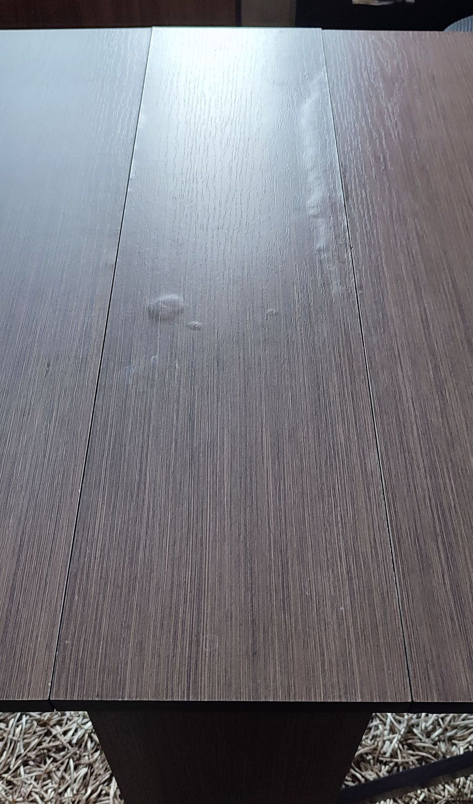 В процессе использования образовались следующие дефекты, которые, к слову, никоим образом на фунционал не влияют, а тем более под скатертью абсолютно незаметны: