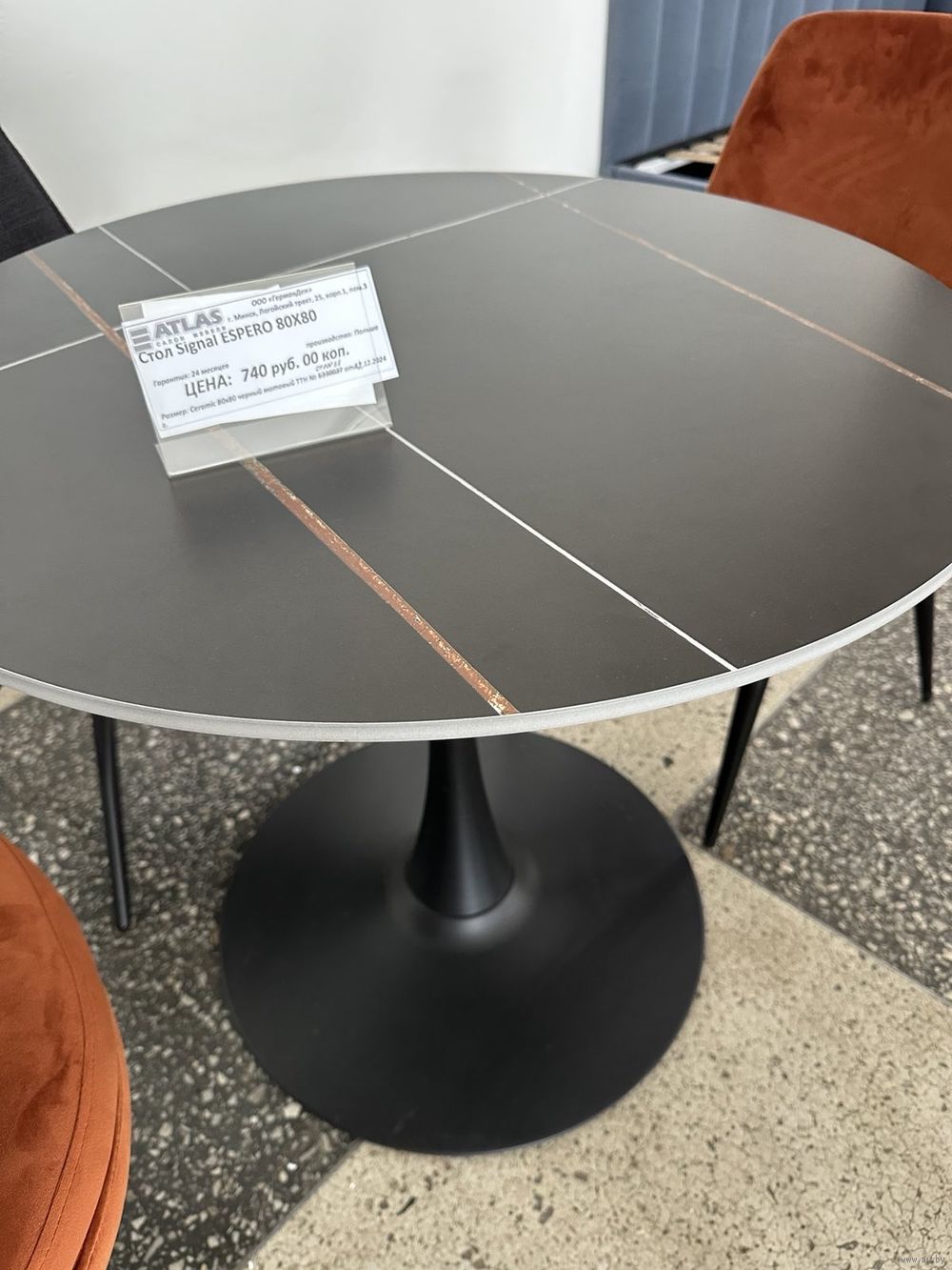 Стол обеденный диаметр 80 см, керамика, новый. Цвет черный.