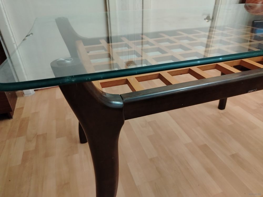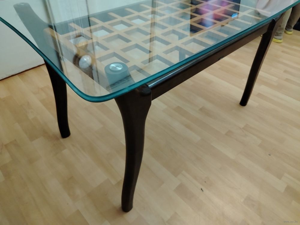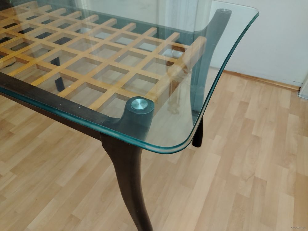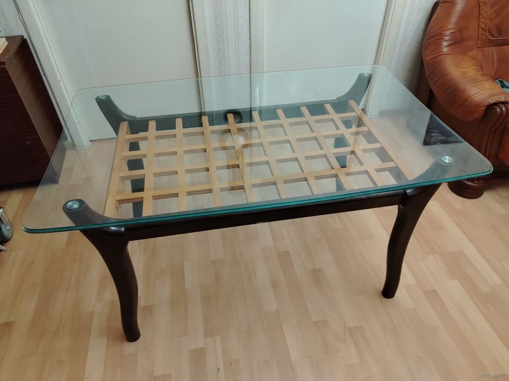 Основание и ножки из массива.Столешница из толстого каленого стекла.Размер 130 х 80.
