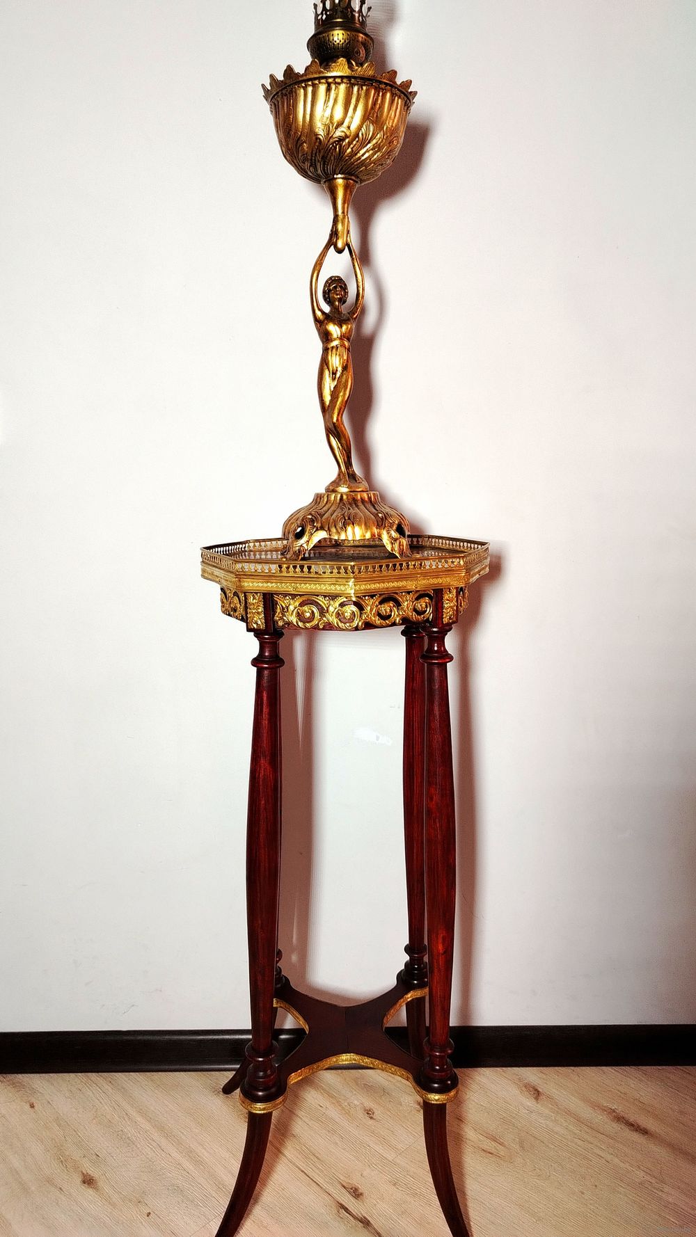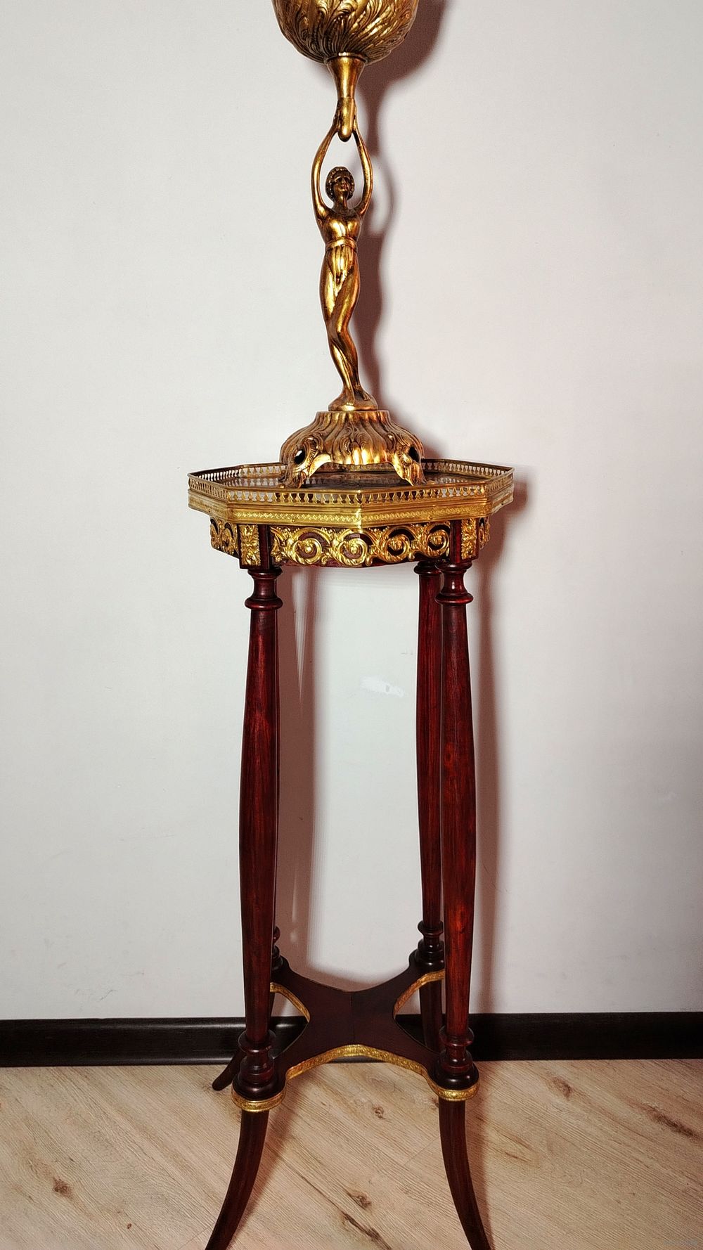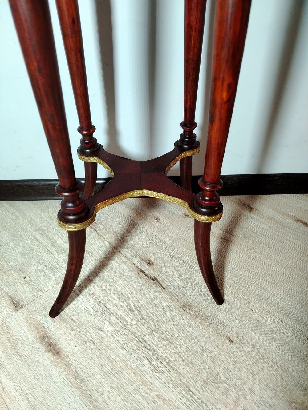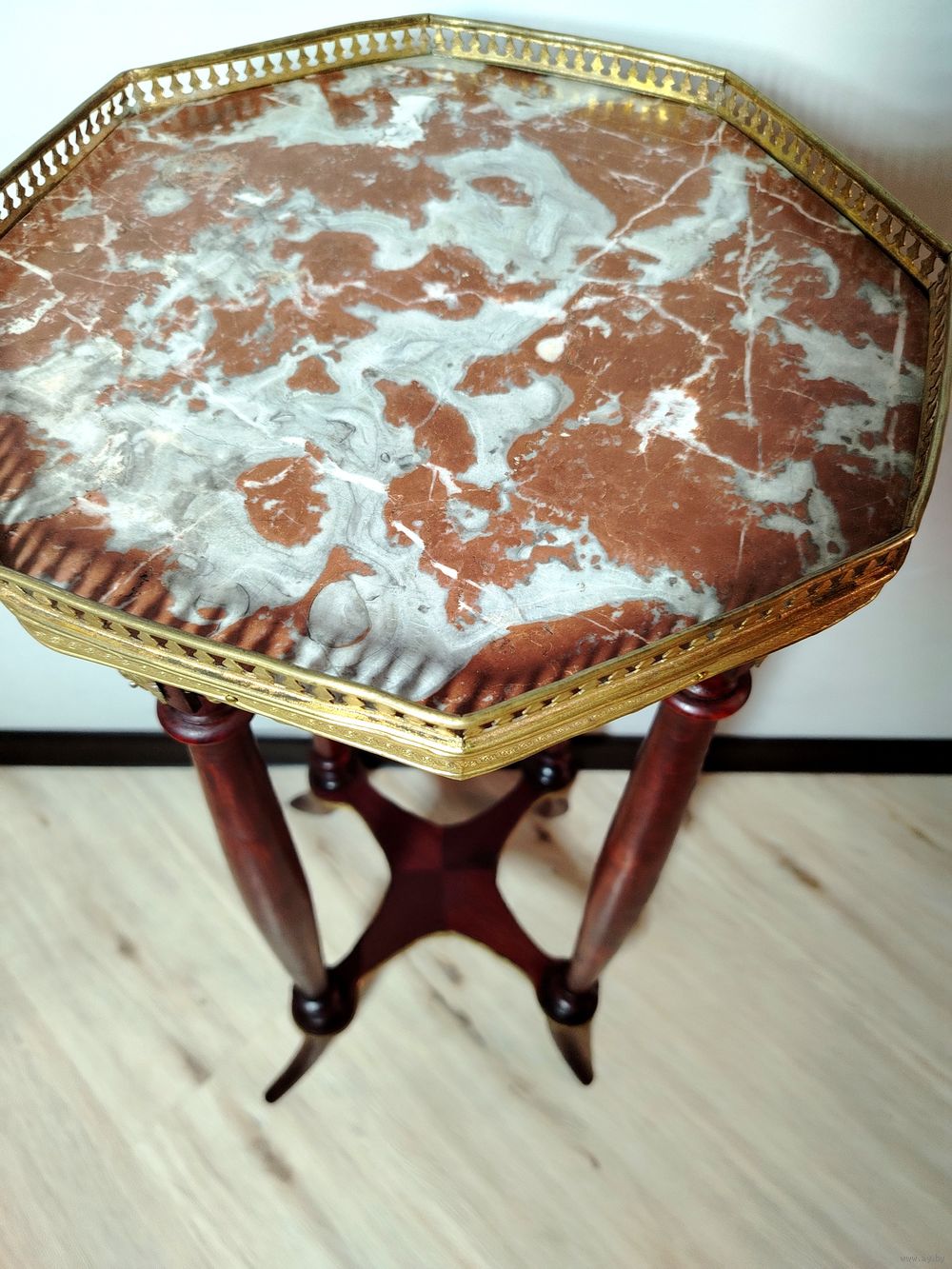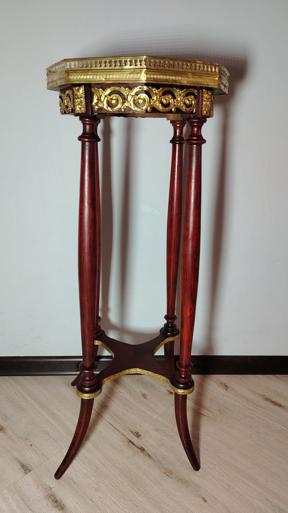 Стол (подставка). Европа. Массив дерева, бронзовые элементы, мраморная столешница. Высота 80 см.
