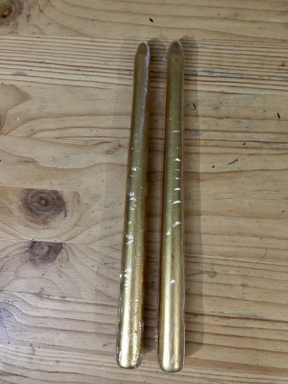 НОВЫЕ: высокие столовые свечи, 2 шт., до 8 часов горения. Цвет: золотой. Для сервировки стола, ужина или декора, для праздников или съёмок. Лишние и не понадобились. Самовывоз. Звонить.