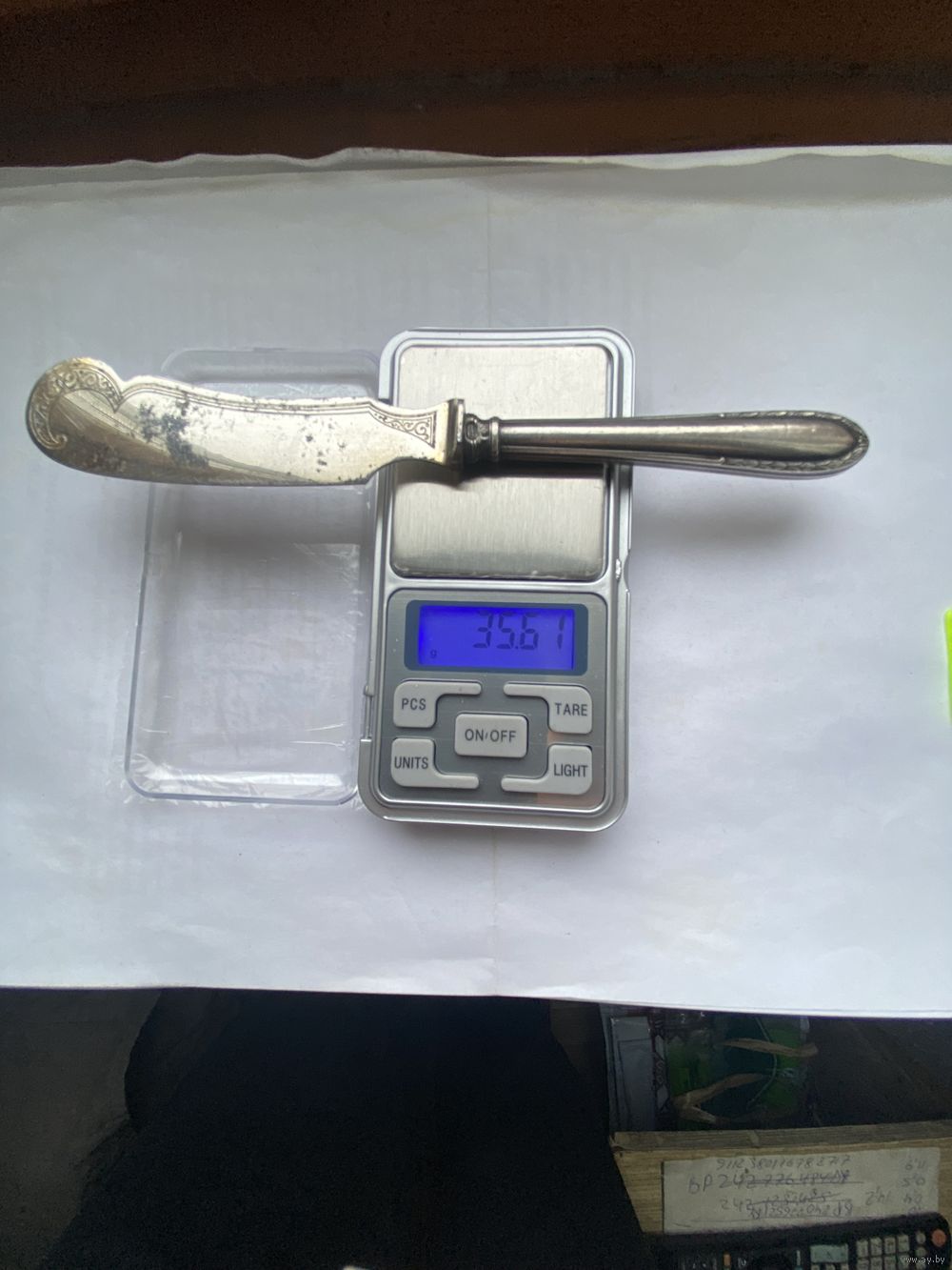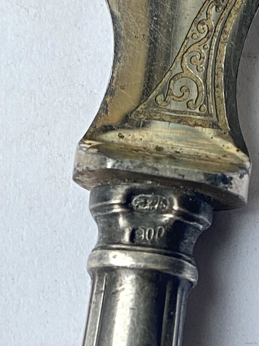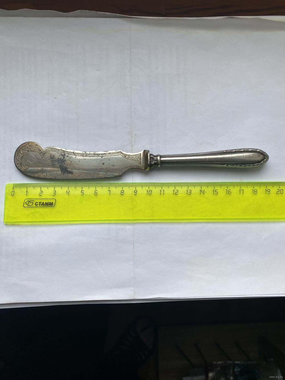 | Столовый нож. Предположительно для масла. Ручка серебро 875пр. | |