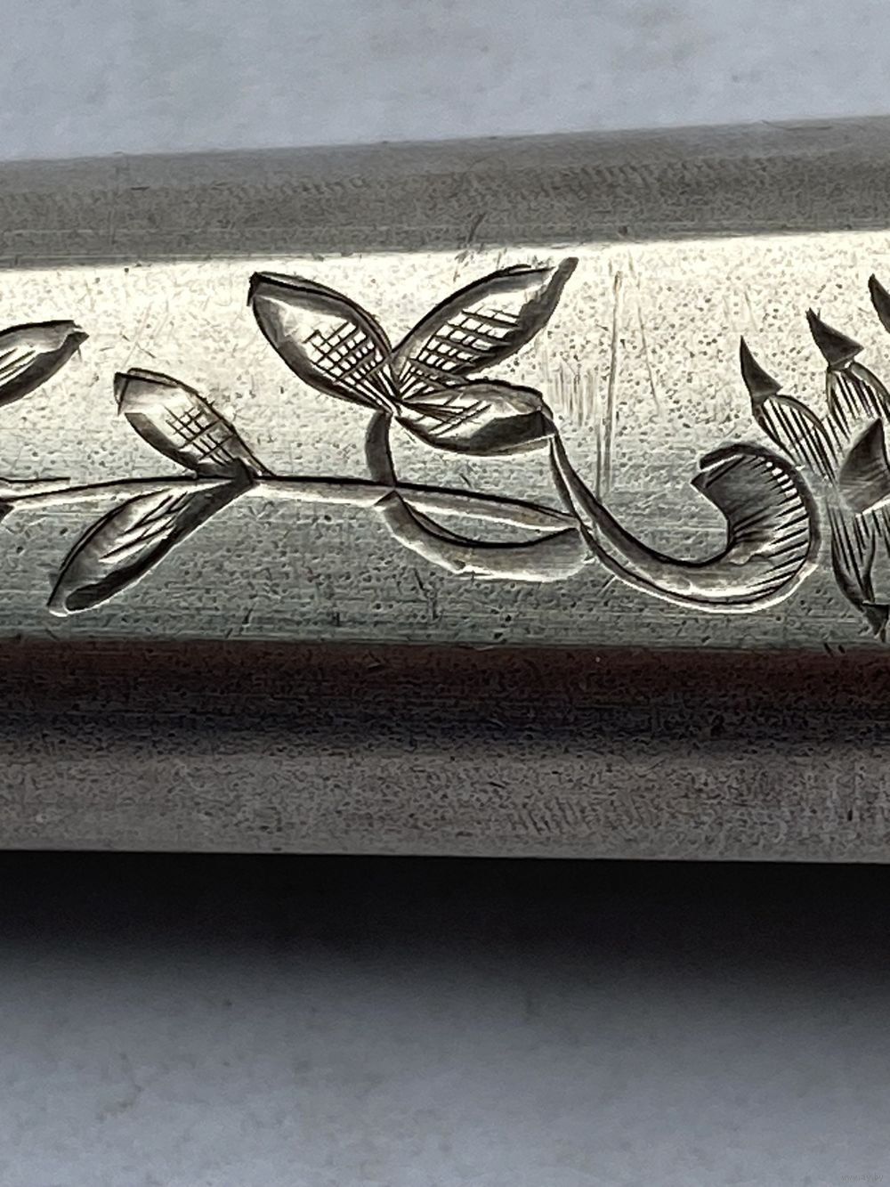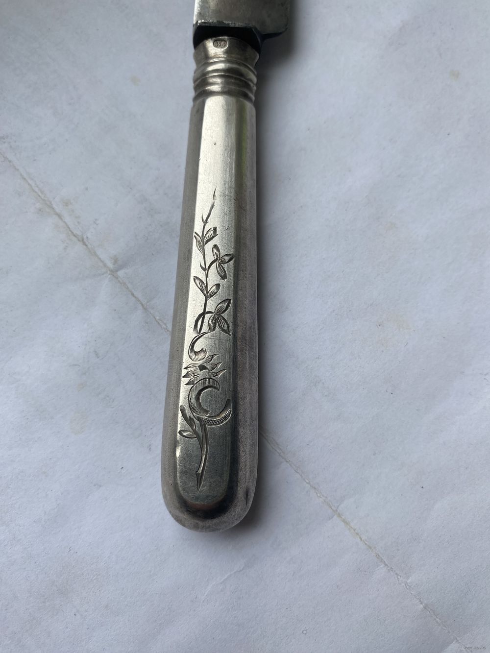 | Столовый нож. Ручка серебро 840пр. Царизм. Штихельная резьба. | |