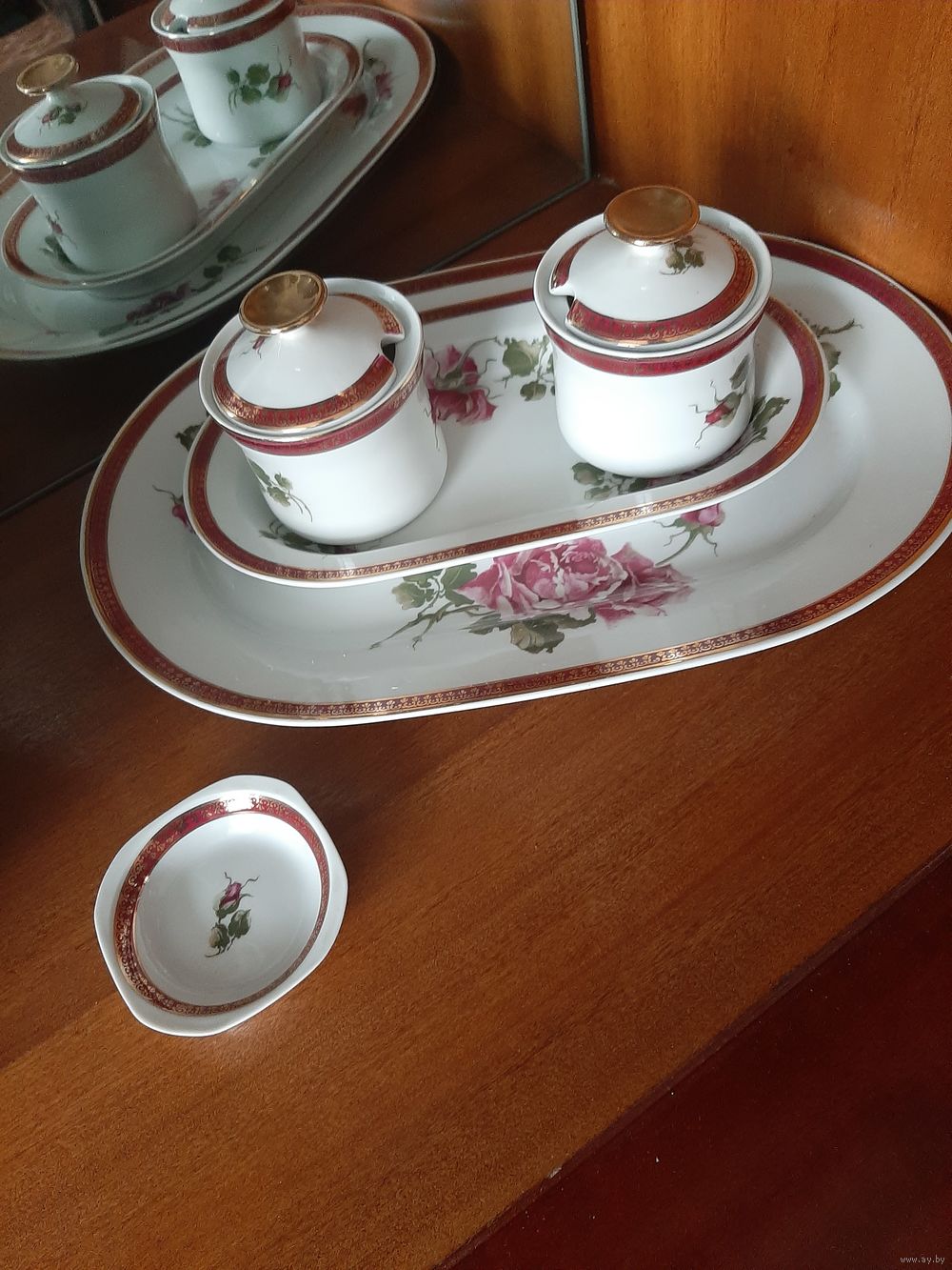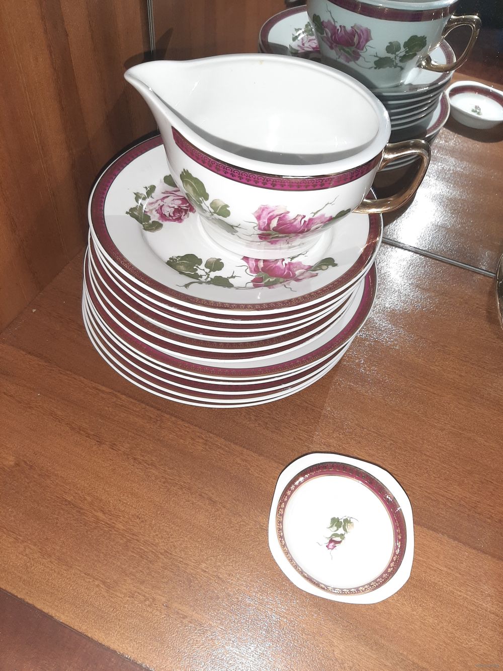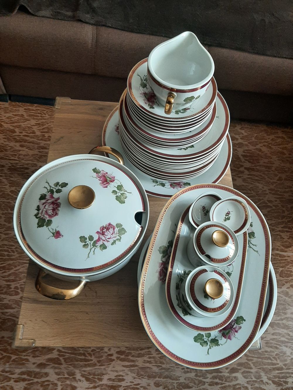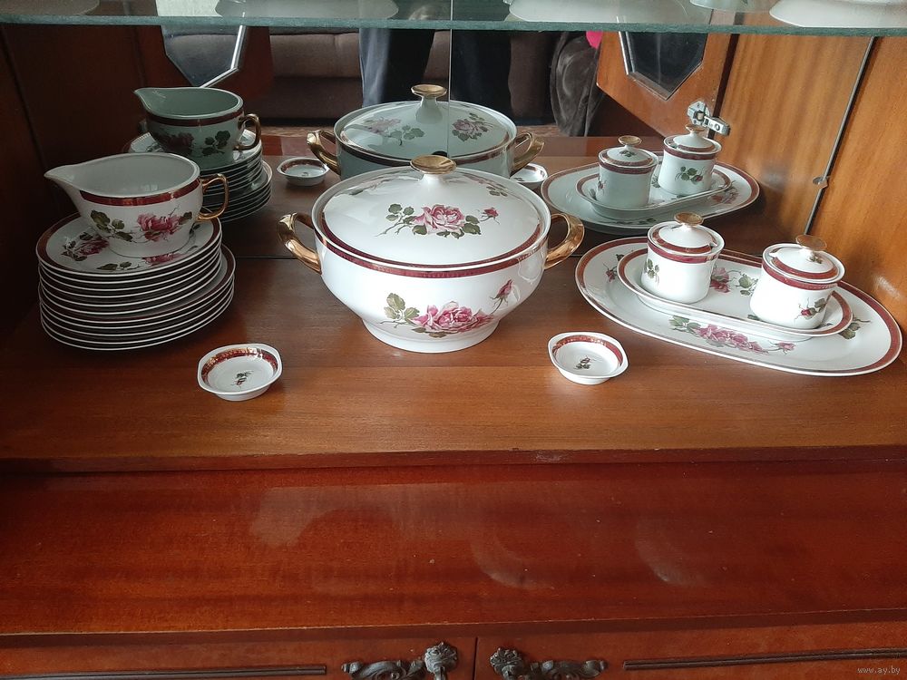 Сервиз столовый на 6 персон.фарфор, деколь, золочение, Wloclawek (Влоцлавская фаянсовая фабрика), Польша, 1970-1980 гг.Не хватает 1 тарелки.