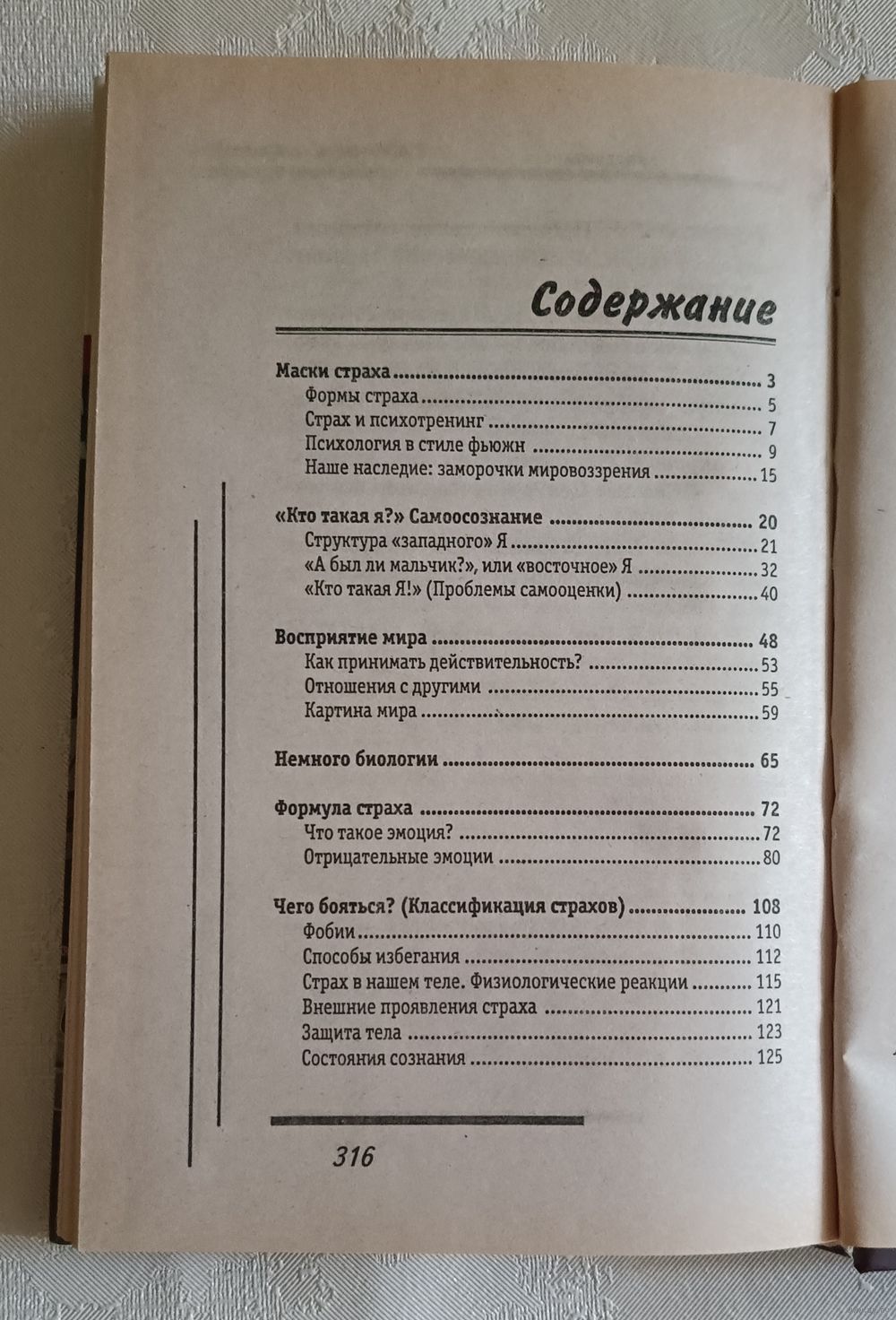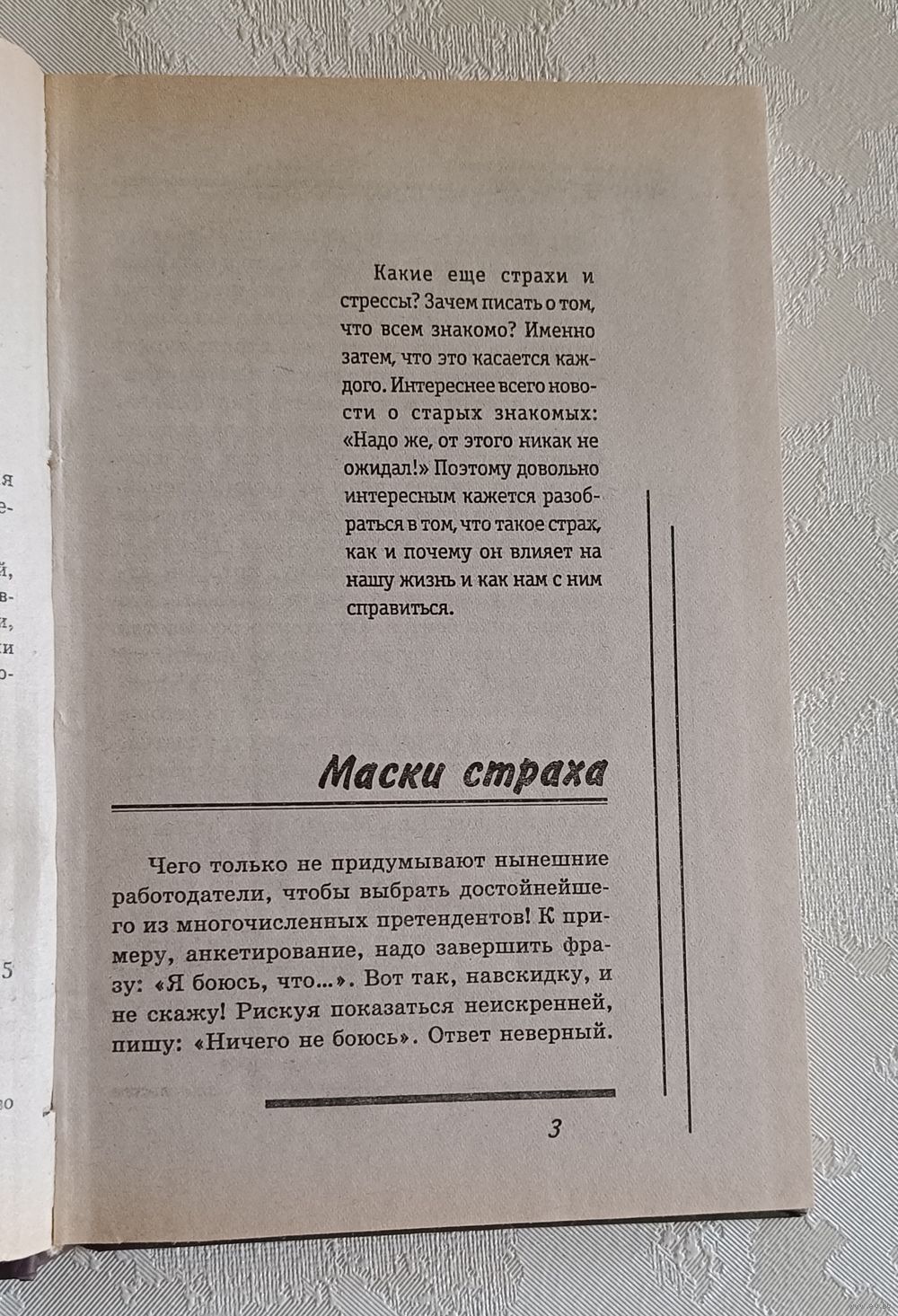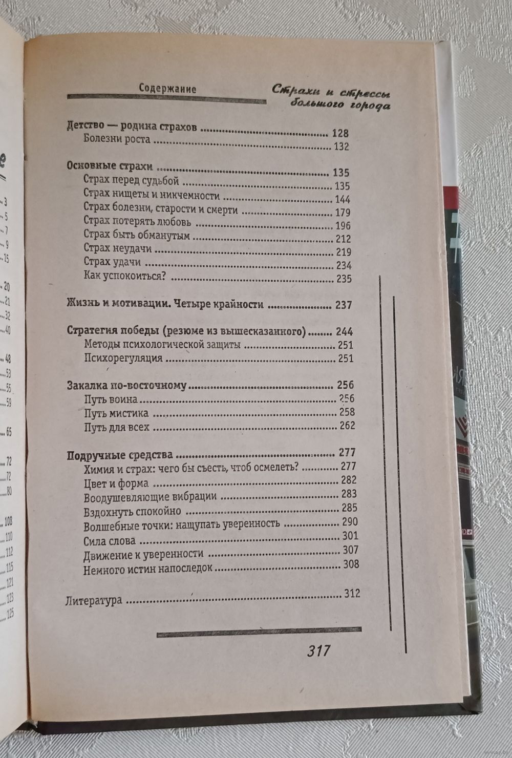 Книга раскрываеет суть страхов, стрессов и фобий, присущих жителям мегаполисов. Перечислены основные страхи - страх нищеты, одиночества, неудачи, старости и другие откуда они берутся и как с ними бороться. Даны методы психологической защиты, восточные способы релаксации, аутотренинги.