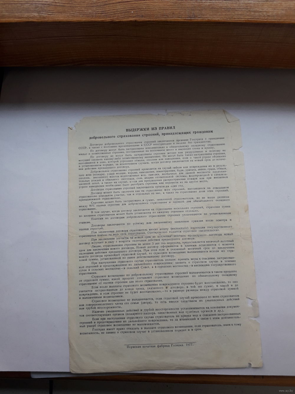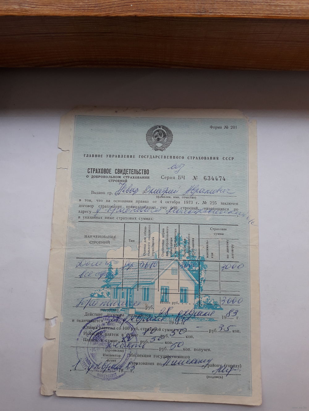 Страховое свидетельство форма 201 -1977 год (о добровольном страховании строений)
