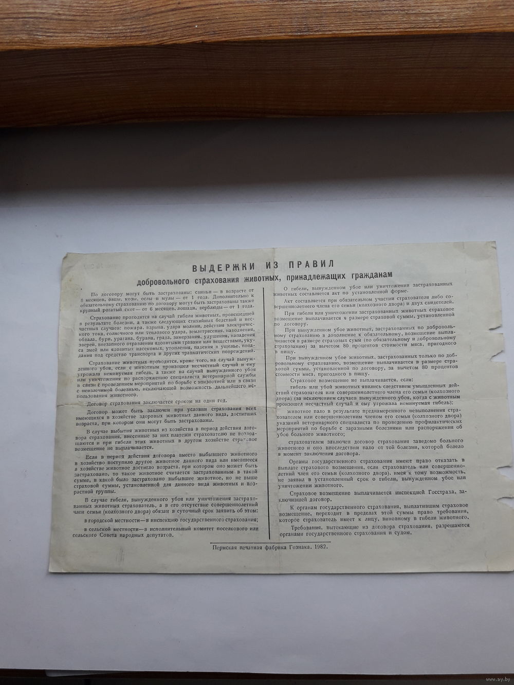 Страховое свидетельство форма 202 -1982 год (о добровольном страховании животных)