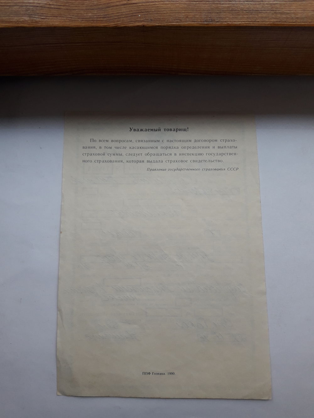 Страховое свидетельство форма 210 -1990 год (от несчастного случая)
