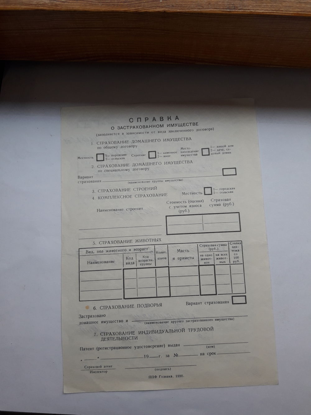 Страховое свидетельство форма 244 -1990 год (о добровольном страховании имущества)