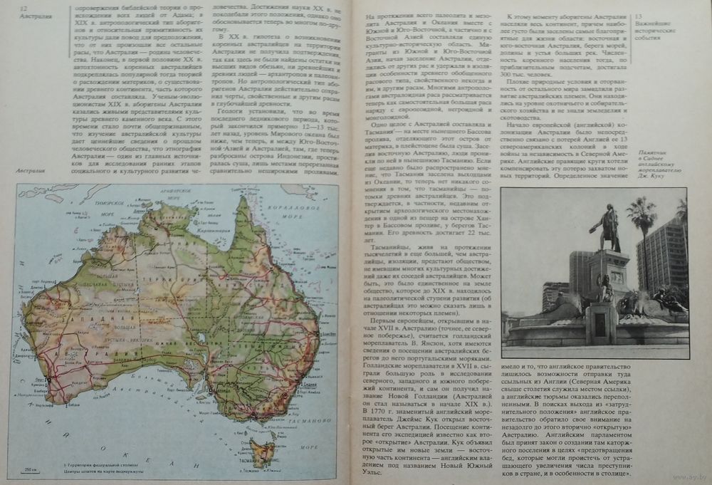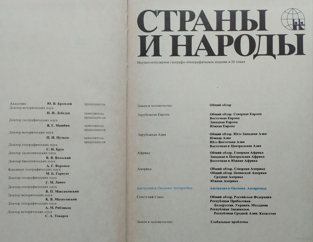Большой энциклопедический формат. 392 стр. Академическое издание серии «Страны и народы», представляющее комплексное этнографическое, географическое и культурологическое описание региона Океании, включая Австралию и Антарктиду, с акцентом на народы и их историю, написанное в советское время. Эта книга — часть большой серии, посвященной народам мира и их быту, с фокусом на историю, культуру коренных народов, колонизацию и современное состояние. Издание построено по единому плану и охватывает географо-этнографическим описанием весь современный мир, все без исключения большие и малые страны. В томе даётся описание природы, истории, хозяйства и населения Австралийского Союза и стран Океании. В заключительном разделе тома освещаются история и культура региона.