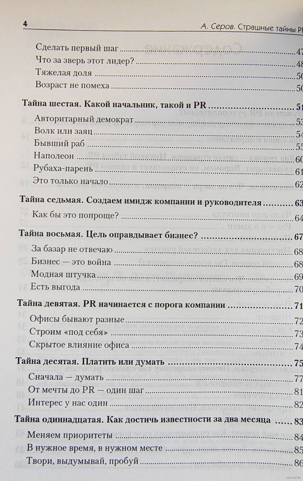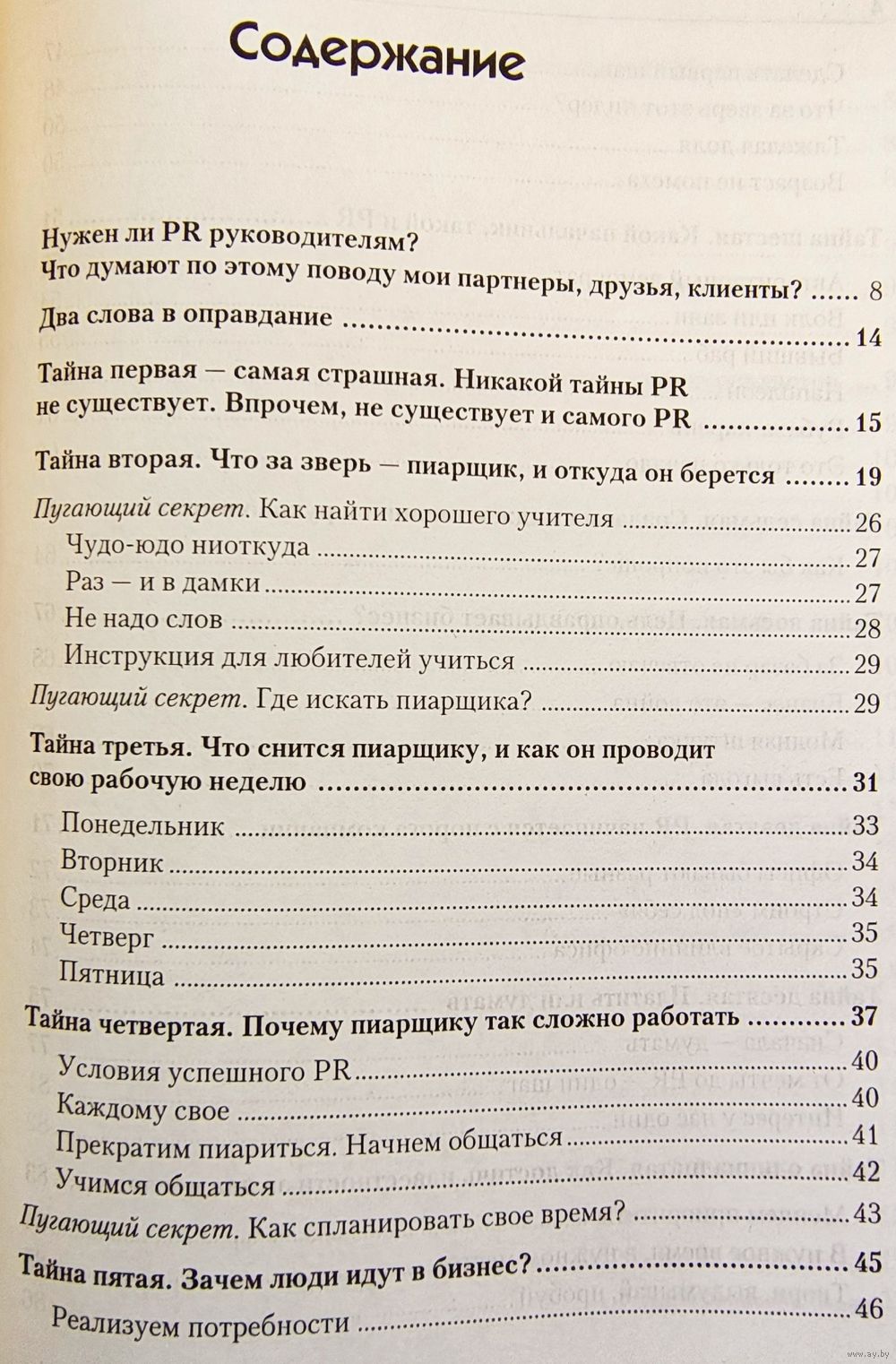 Каждая глава книги содержит практические рекомендации и советы, связанные с различными аспектами деятельности менеджера по PR: как сделать первый шаг? как убедить руководителя в необходимости связей с общественностью? как завязать контакты с журналистами? И в итоге - как стать успешным профессионалом.