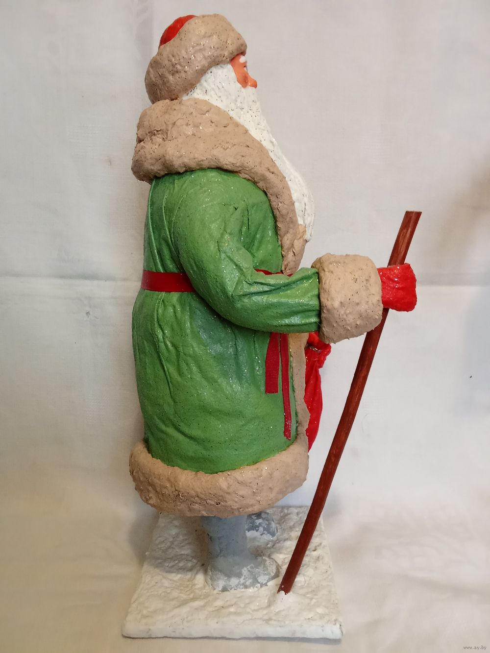 Строгий Рождественский Дед, Трескун, Студенец, Мороз. Современная работа в стиле ретро. Вата, ткань, дерево и проч. Высота 41 см. Состояние хорошее.