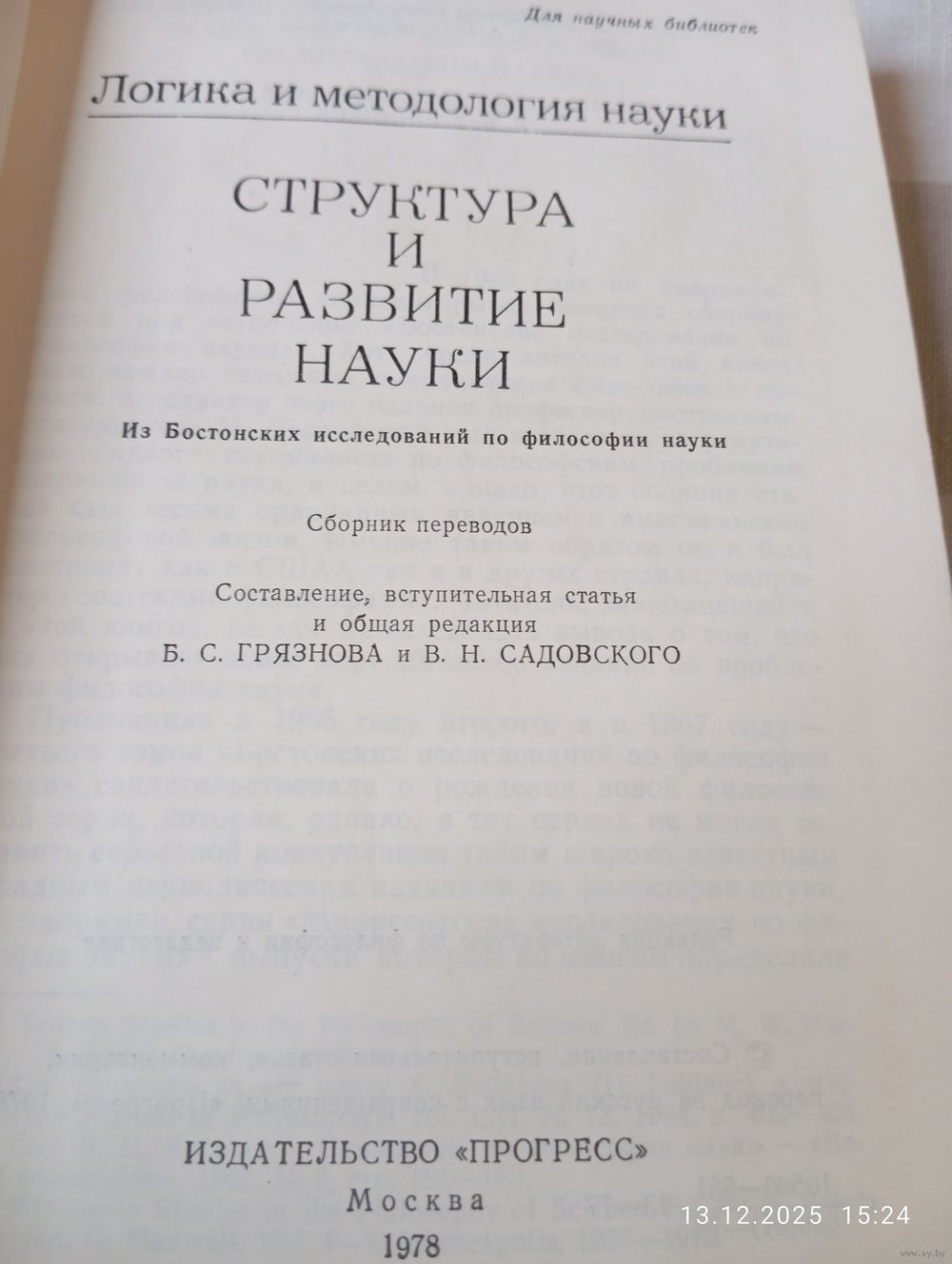 Структура и развитие науки. Из Бостонских исследований по философии науки. М. Прогресс 1978. Редкая. В хорошем состоянии, тв переплет. 488 с. Тираж 6000. Возможность отправки Белпочтой, полная предоплата на карту Беларусбанк!