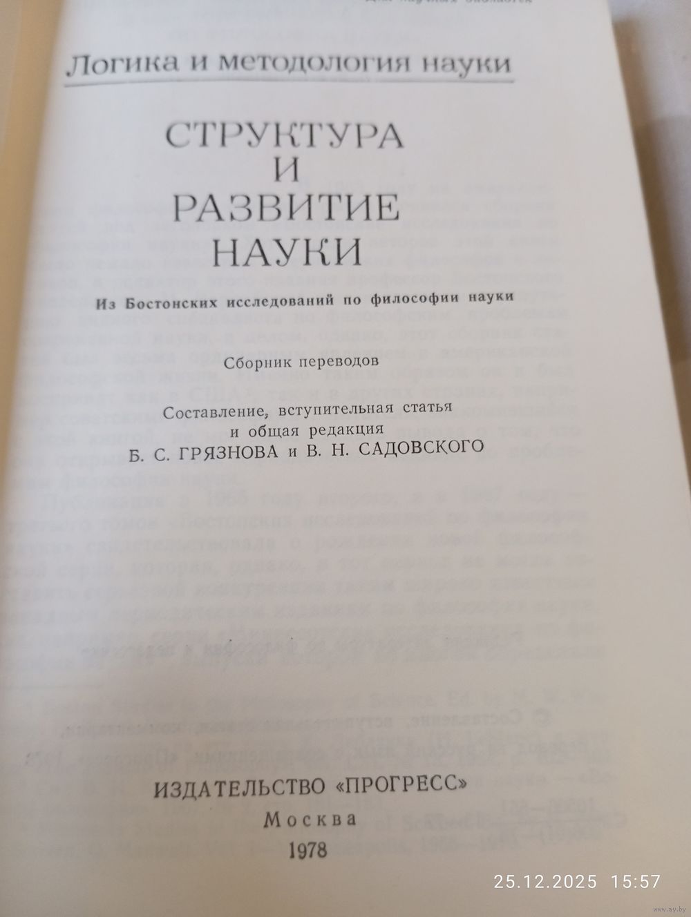 Структура и развитие науки. Из Бостонских исследований. Редкая! М. Прогресс 1968. В хорошем состоянии, тв переплет. 488 с. Тираж 6000. Без торга!. Возможность отправки Белпочтой, полная предоплата на карту Беларусбанк