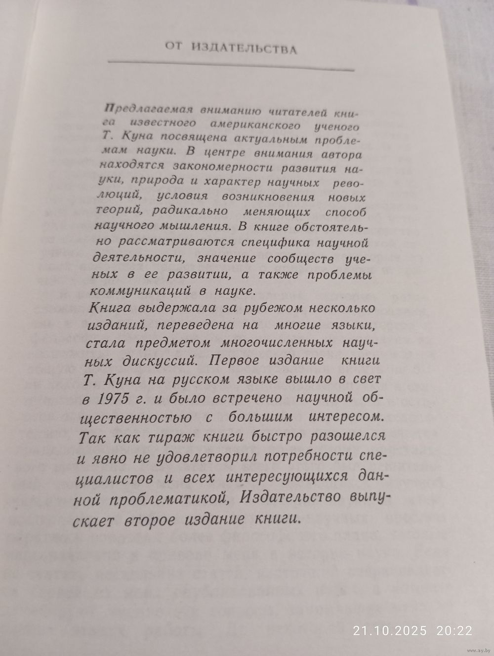 Структура научных революций. Кун Т. Редкая! Прогресс 1977. В хорошем состоянии, тв переплет. 300 с. Возможность отправки Белпочтой, полная предоплата