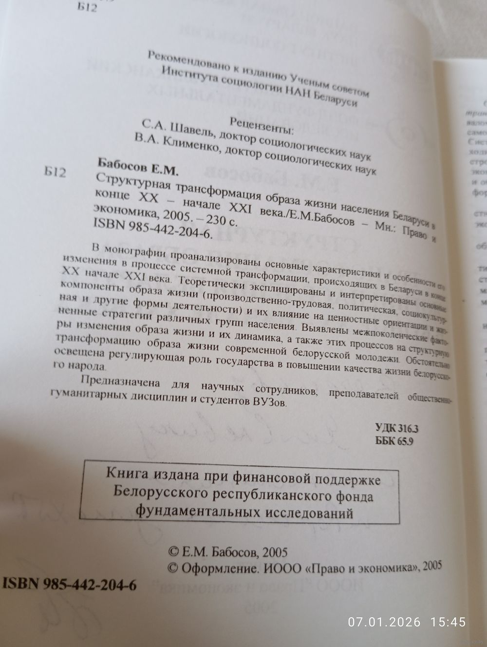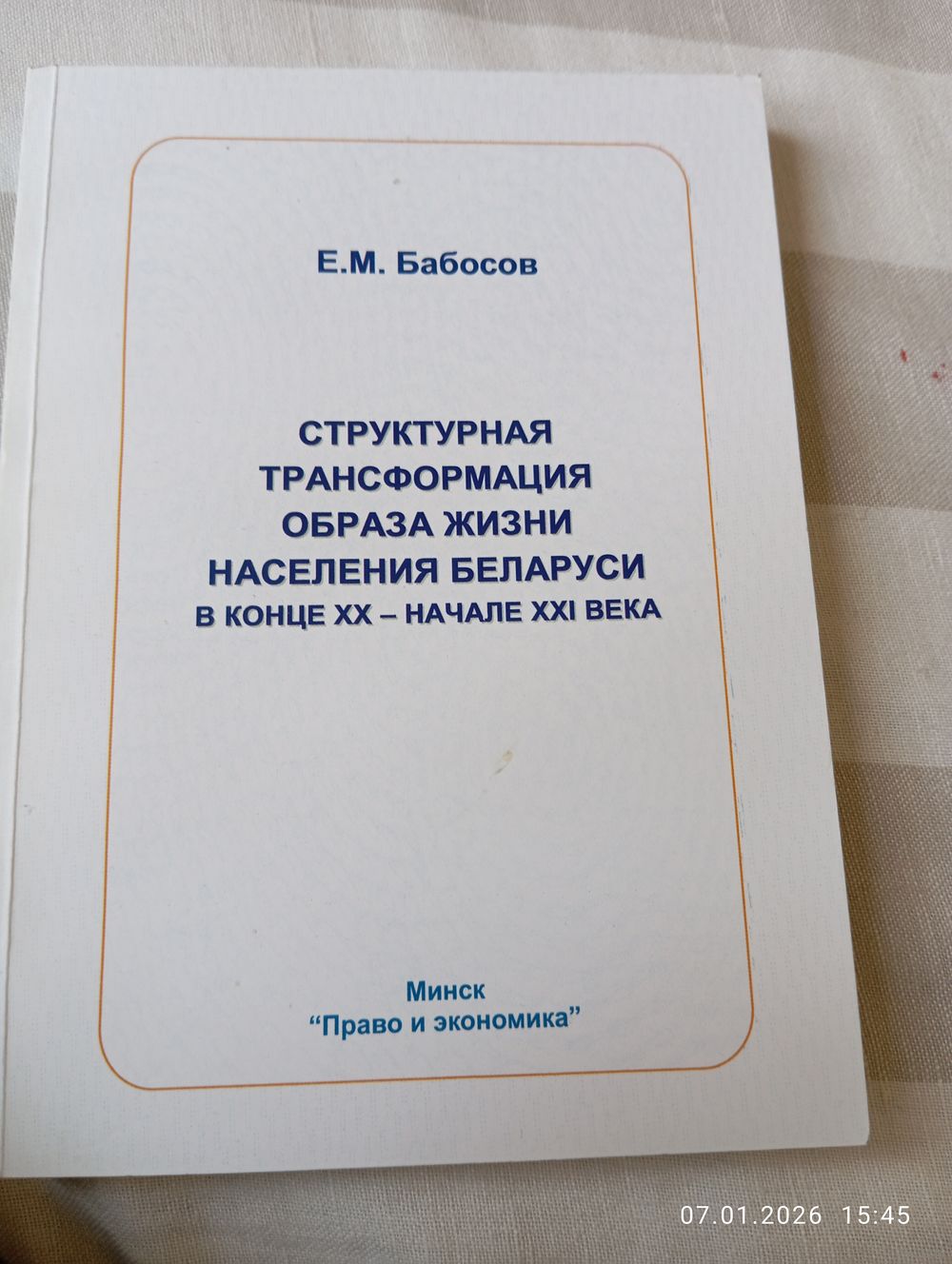 Структурная трансформация образа жизни населения РБ в конце 20& начале 21 в. Бабосов Е. С автографом. Редкая. Мн. Право и экономика 2005. В прекрасном состоянии, полумягкая обложка. 230 с. Тираж 200(!). Возможность отправки Белпочтой, полная предоплата!