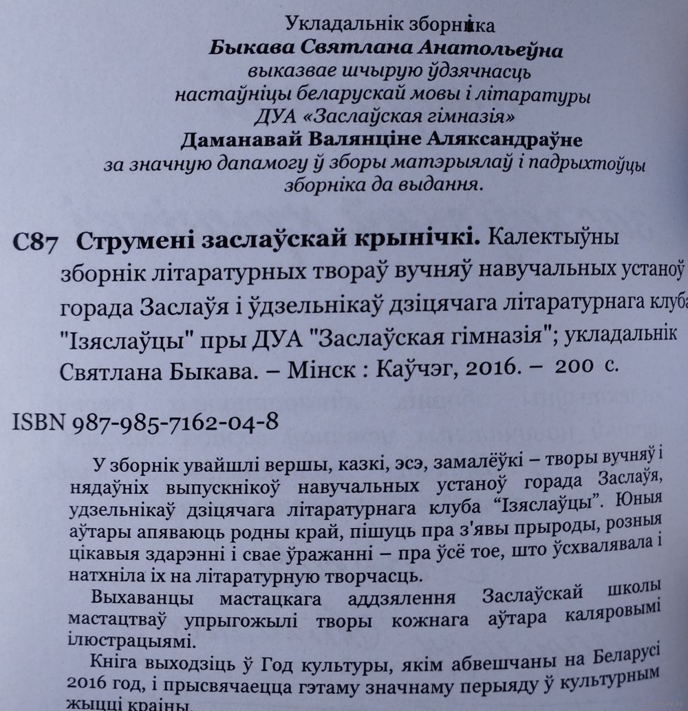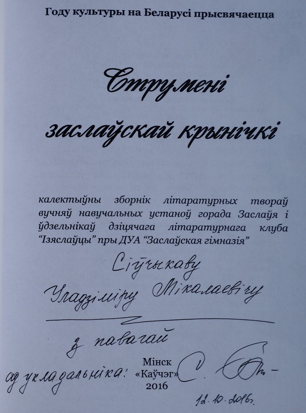 Вялікі фармат. Тыраж 115 экз. 200 стар. Аўтограф Святланы Анатольеўны Быкавай - беларускай пісьменніцы, Лаўрэата рэспубліканскага літаратурнага конкурсу ў галіне паэзіі «Лепшы твор 2013 года», Мінскай абласной прэміі ў галіне літаратуры ў намінацыі «Паэзія».
