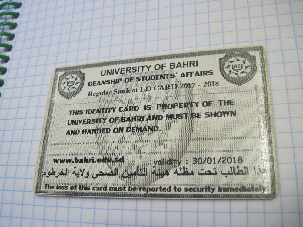 Студенческий билет Университета Бахри (Судан) с рубля!