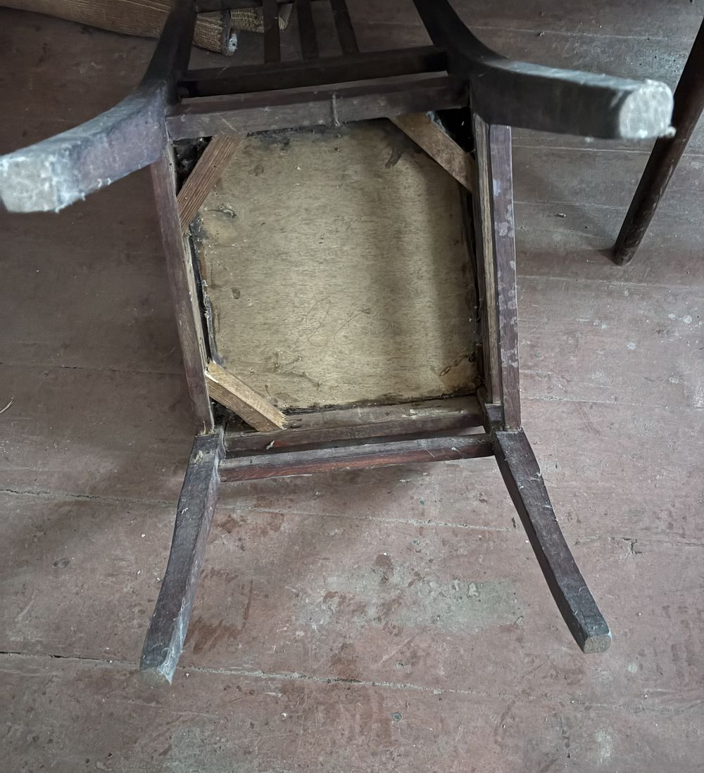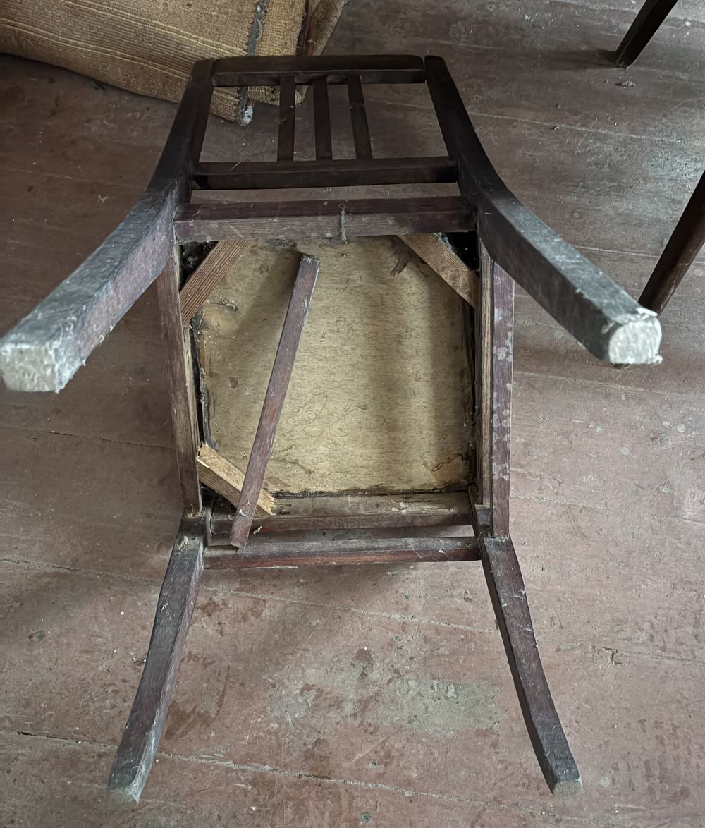 Стул старинный, деревянный, похоже, дубовый.Стул очень крепкий, не рассохшийся, не расшатанный.Требуется внешняя реставрация, смотрите фото.